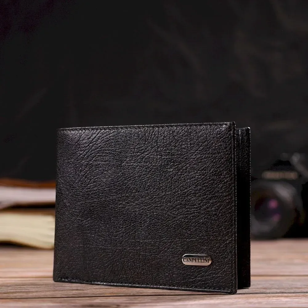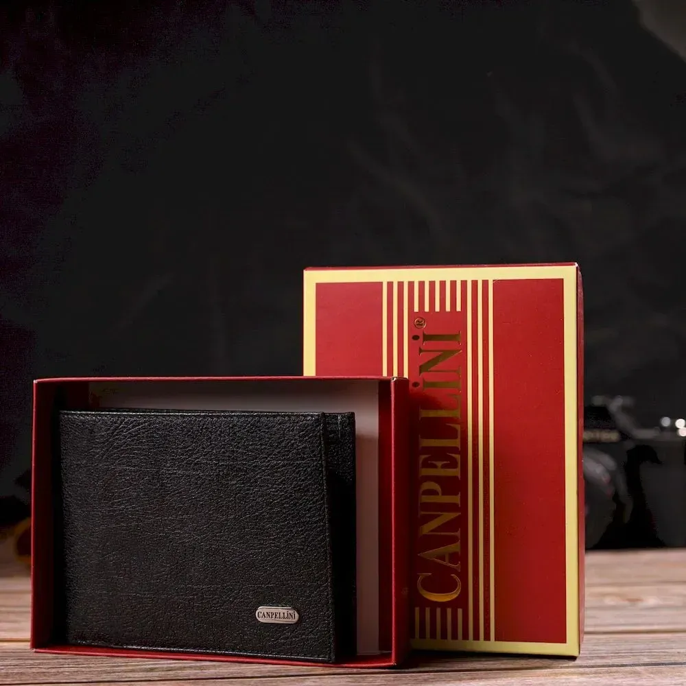 Бумажник для мужчин без застежки из натуральной кожи CANPELLINI 21764 Черный
