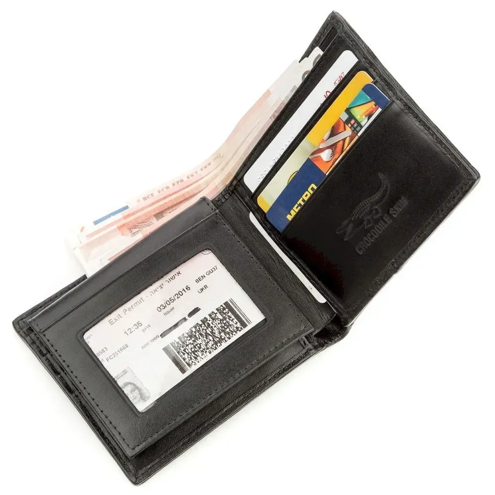Бумажник мужской CROCODILE LEATHER 18578 из натуральной кожи крокодила Черный