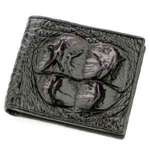 Бумажник мужской CROCODILE LEATHER 18582 из натуральной кожи крокодила Черный