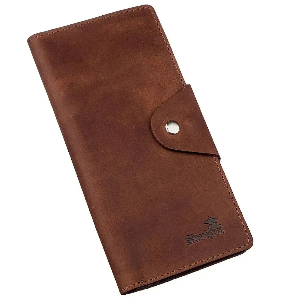 Бумажник мужской вертикальный из винтажной кожи на кнопках SHVIGEL 16181 Коричневый