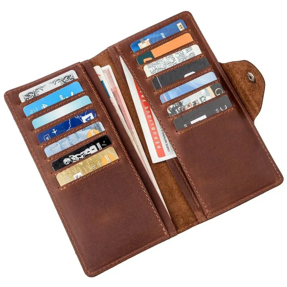 Кошелек из натуральной винтажной кожи. Застегивается на хлястик с кнопками. Модель имеет матовое покрытие. Достаточно оригинально смотрится. Богатый внешний вид. Сверху прошита ровной строчкой в дизайн изделия. Имеет строгий выдержанный дизайн в классическом стиле. Аксессуар отлично подчеркнет ваш статус. Не занимает много места. Тонкий и одновременно вместительный. Будет отличным подарком. Кошелек имеет высокую износостойкость к потертостям и трещинам. Модель доступна в разных цветах и типах кожи. Мы уверены, что бумажник удивит своего владельца.