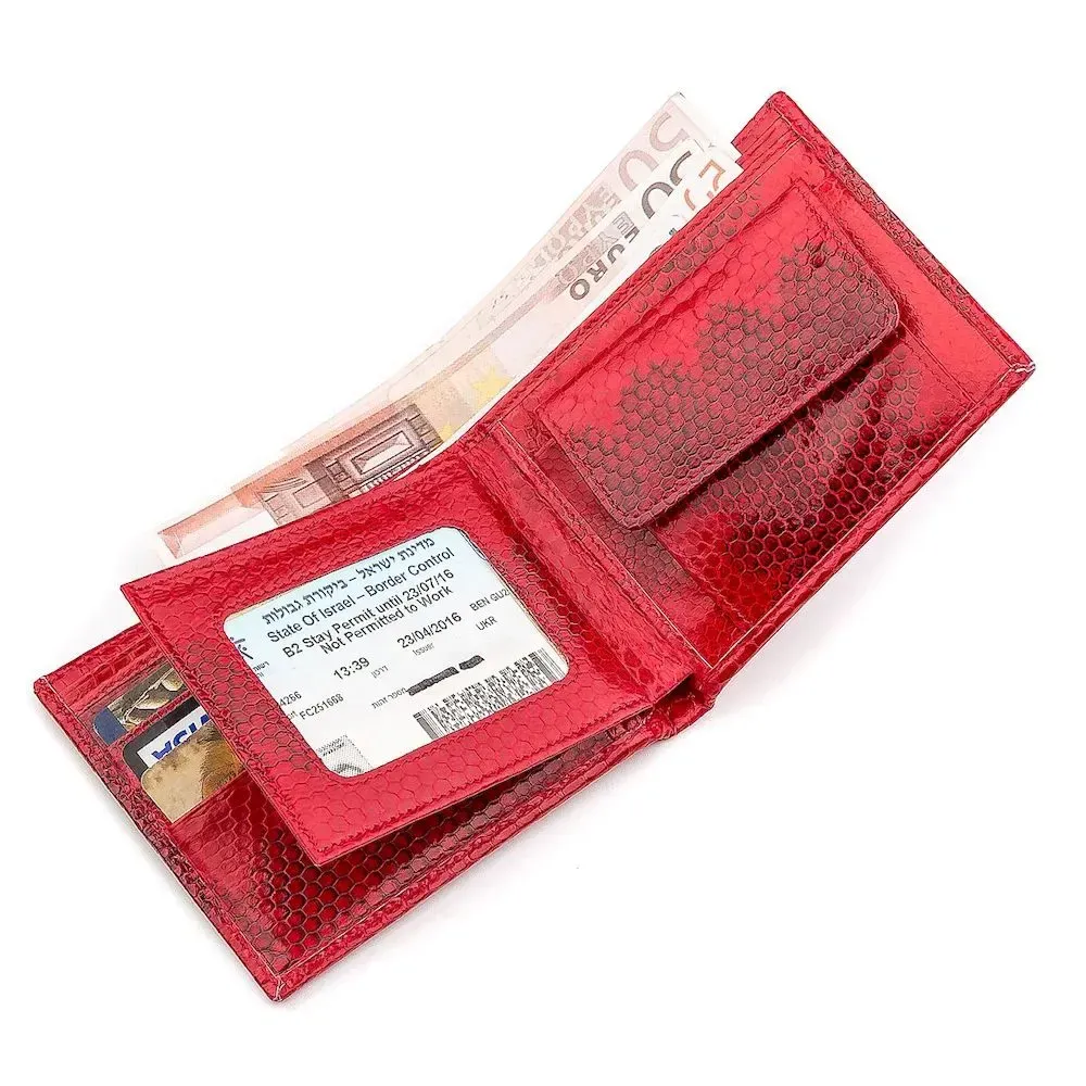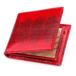 Яркий кошелек красного цвета из натуральной кожи морской змеи с оригинальным неповторимым дизайном. Не занимает много места и очень легкий. Приятный на ощупь и с лаковой поверхностью. Может быть оригинальным подарком. Не оставит равнодушной любую женщину. Легко поместится даже в самую маленькую сумочку. Удобно сидит в руке. Имеет высокую износостойкость.
