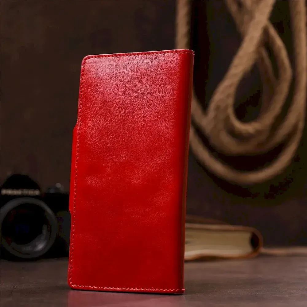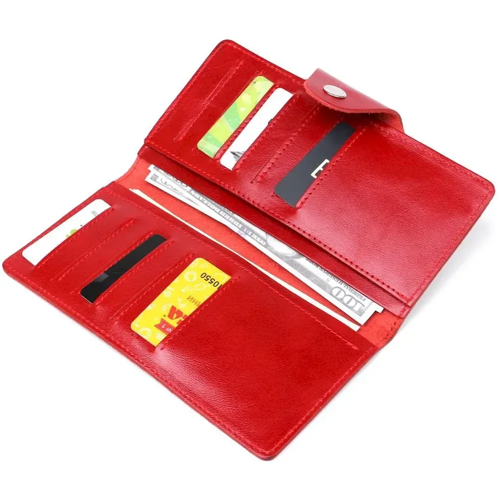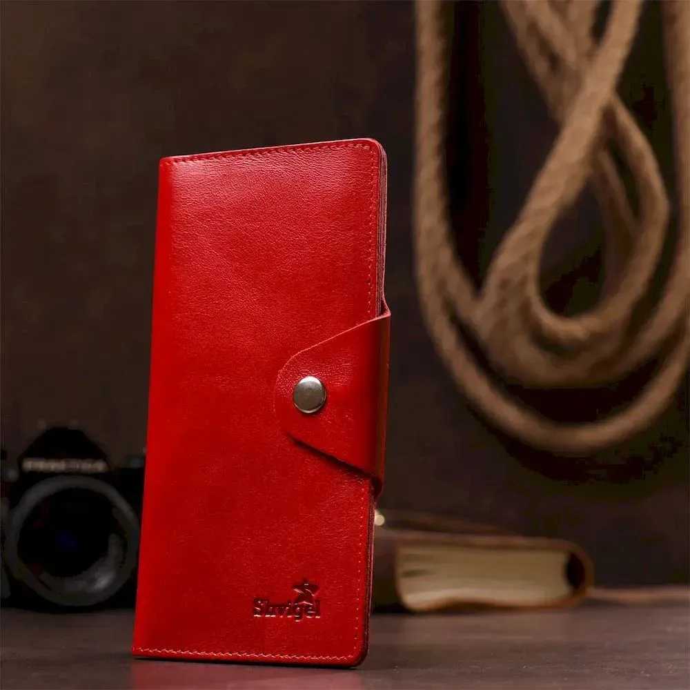 Бумажник женский вертикальный из кожи алькор на кнопках SHVIGEL 16172 Красный