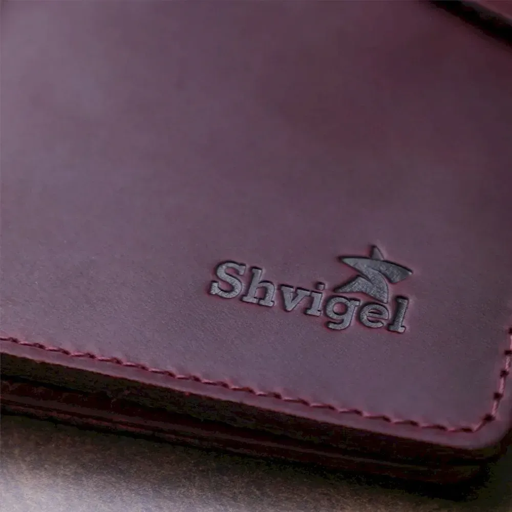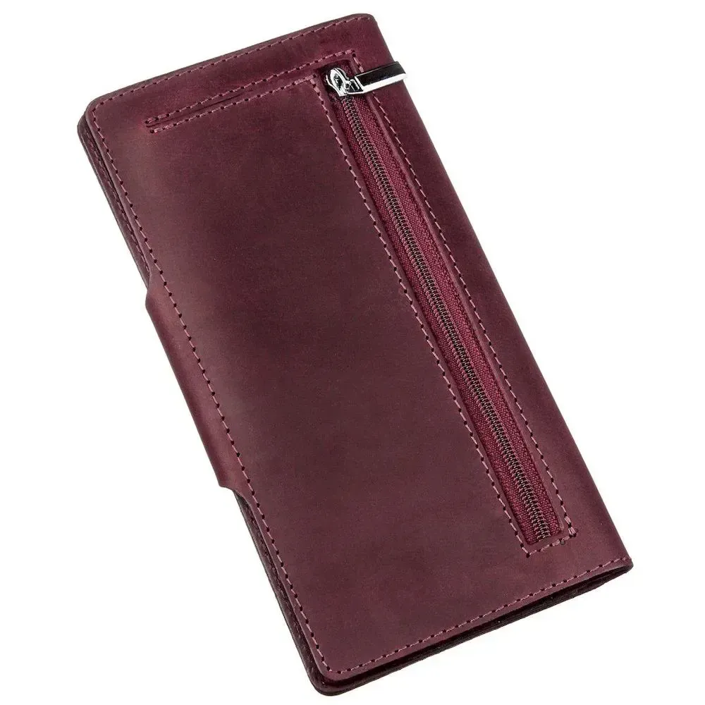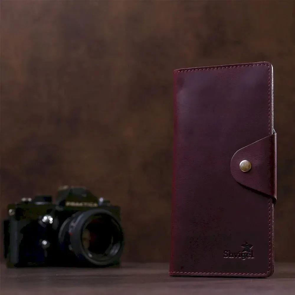 Бумажник женский вертикальный из винтажной кожи на кнопках SHVIGEL 16178 Бордовый
