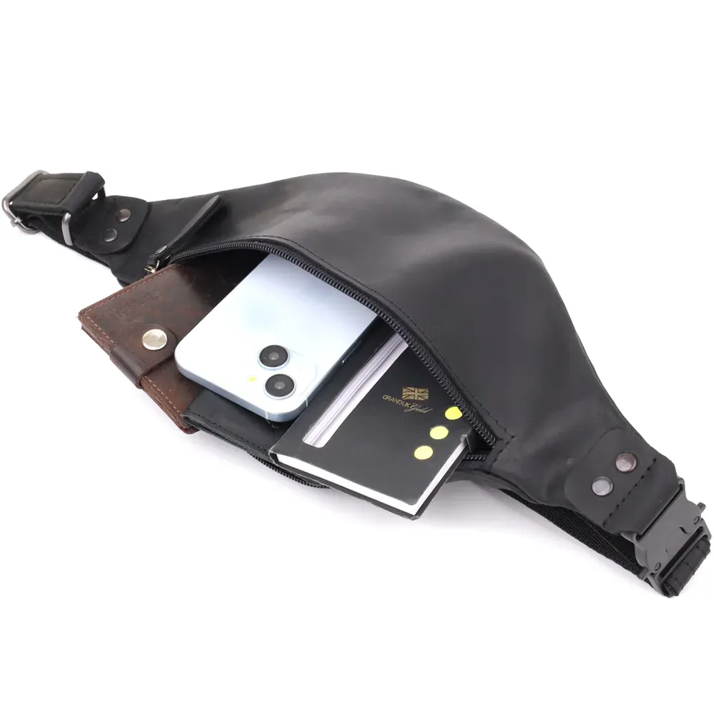Чоловіча бананка з натуральної вінтажної шкіри Shvigel 23129 Чорний