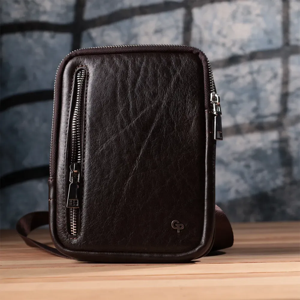 Стильна чоловіча сумка з якісної натуральної шкіри, яка має благородний блиск і приємна на дотик. Носити таку сумку зручно через плече, це дуже зручно у подорожах, коли всі найцінніші речі мають бути під рукою. Сумка доповнена якісною фурнітурою срібного кольору, шви рівні та акуратні. Аксесуар дуже універсальний і стильний для сучасних чоловіків, що підходить як для ділового, так і для повсякденного образу. Ця сумка-бананка, ідеальне поєднання практичності та витонченого стилю, що підкреслює ваш смак та увагу до деталей.
