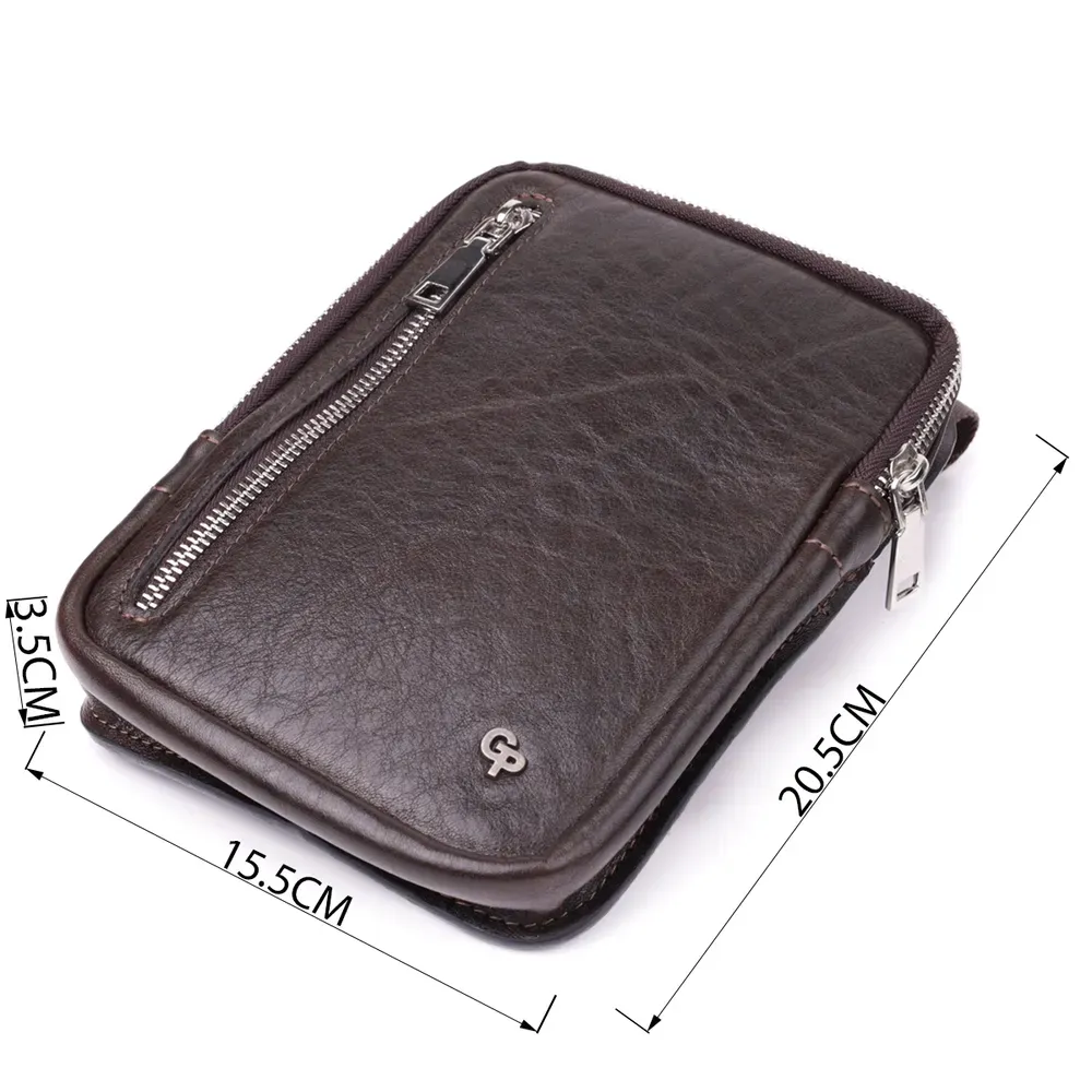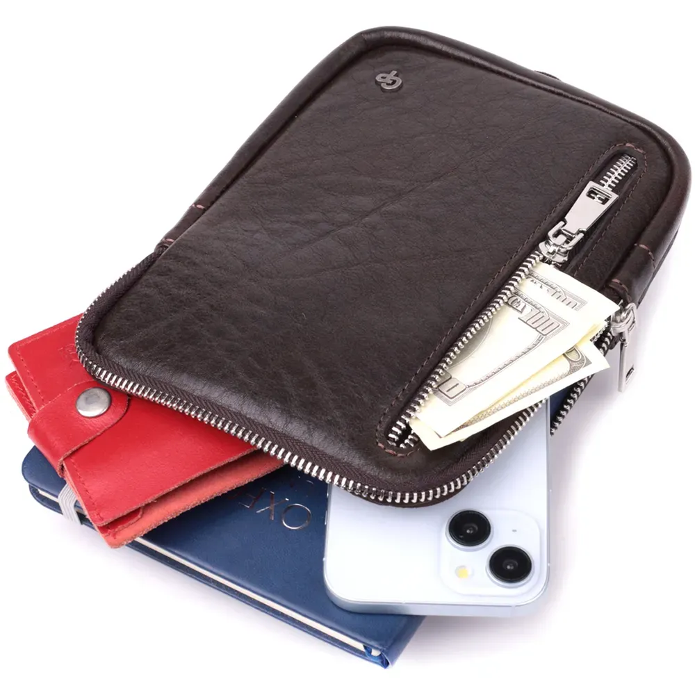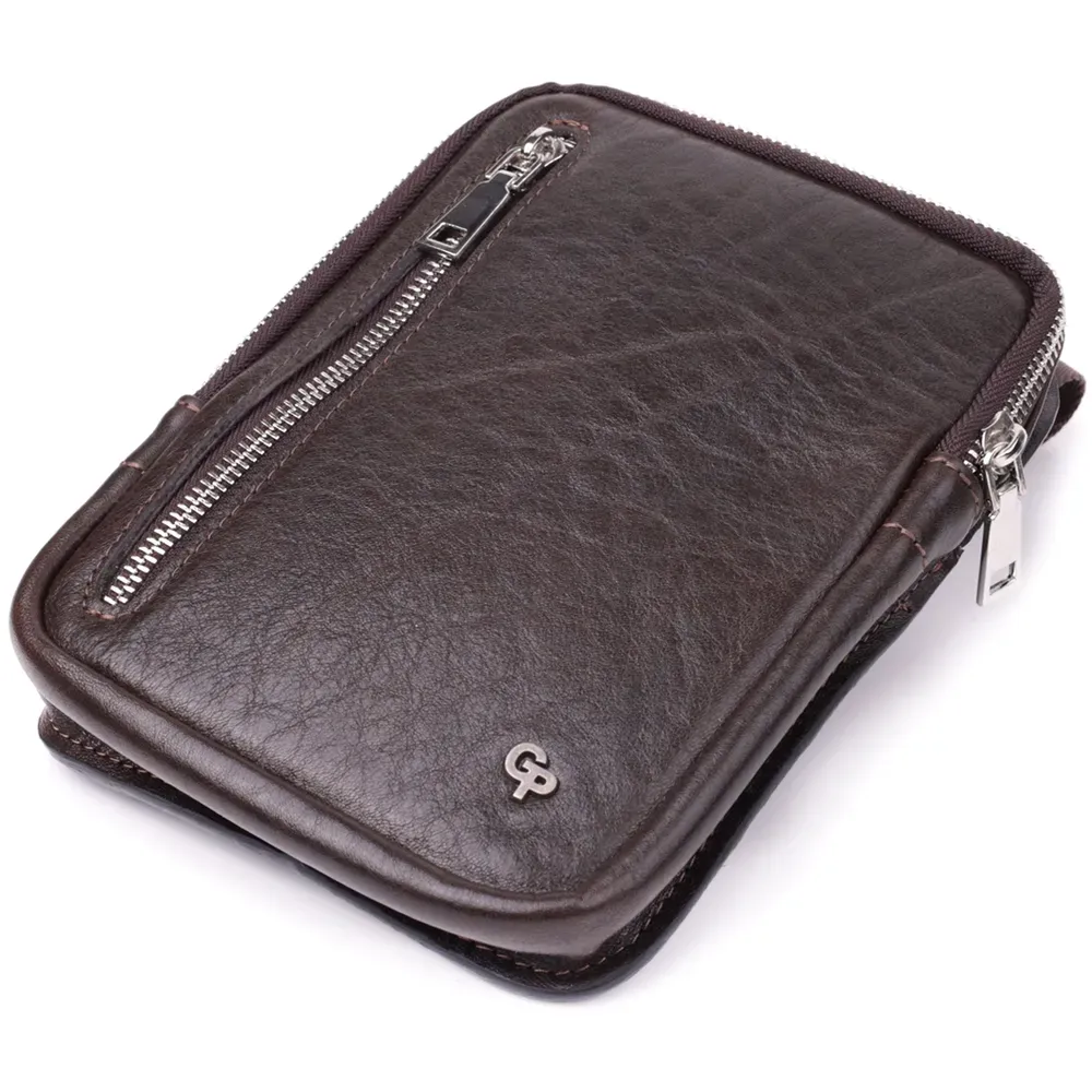 Чоловіча прямокутна сумка бананка з гладкої натуральної шкіри GRANDE PELLE 22880 Коричневий