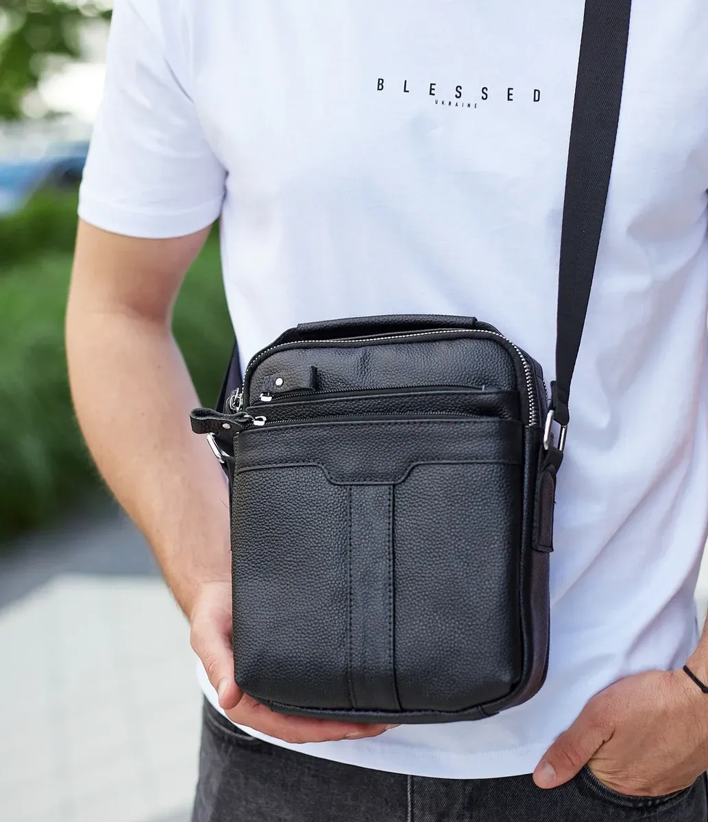 Чоловіча шкіряна сумка-месенджер через плече Tiding Bag A25-3278A Чорна