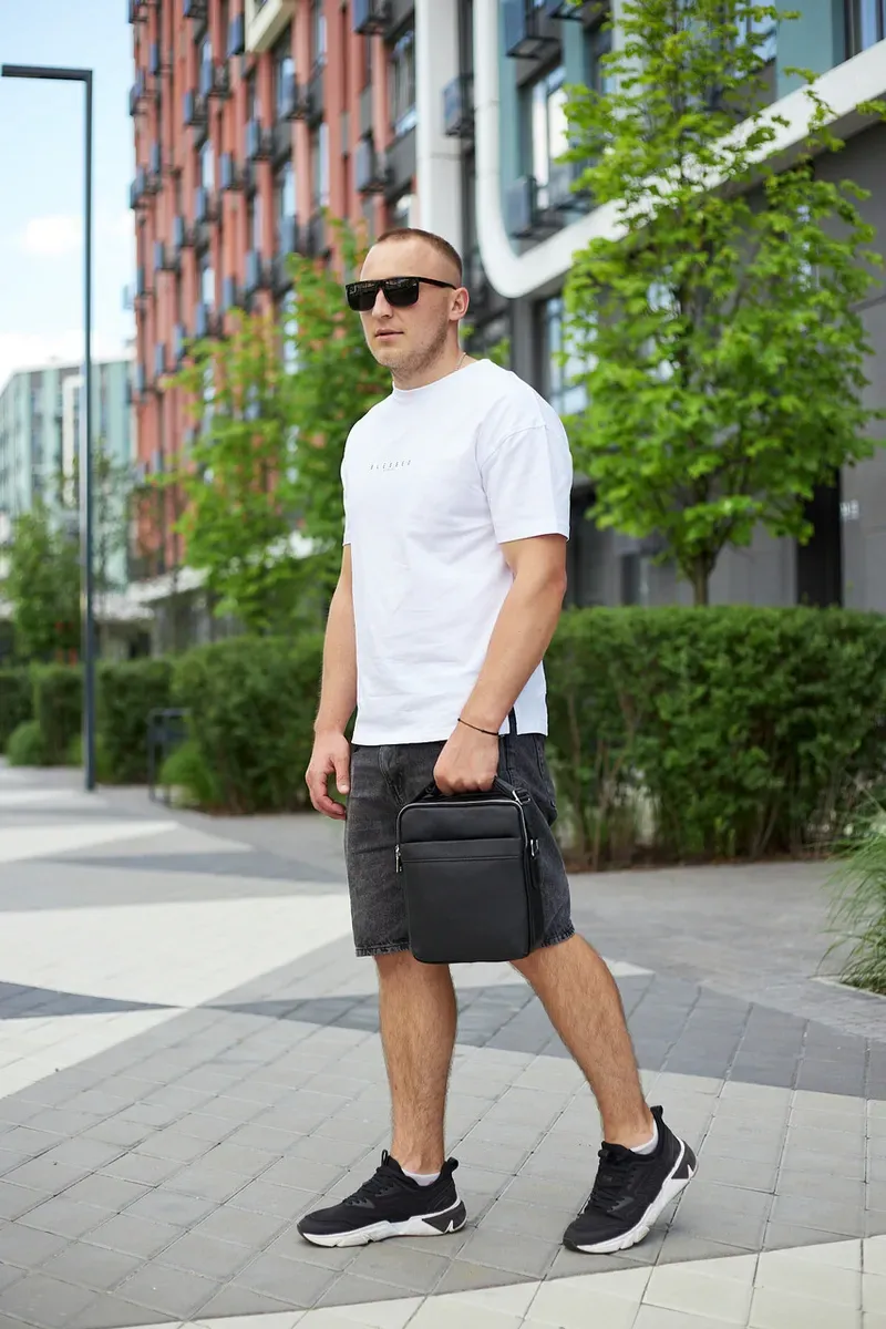 Чоловіча сумка-месенджер з двома відділеннями 21x26x7, шкіряний гаманець Tiding Bag 7459 чорного кольору