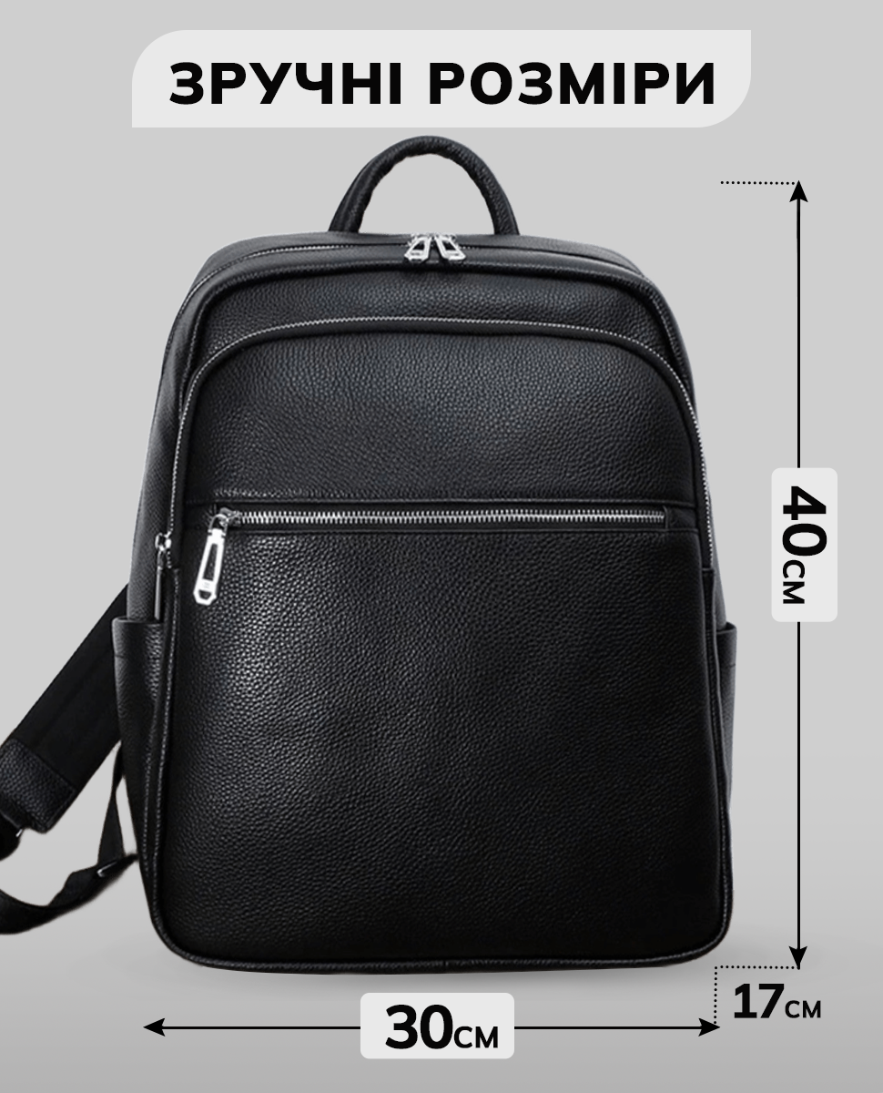 Чоловічий шкіряний рюкзак для поїздок та прогулянок 30х40х17, сумка на спину в офіс Tiding Bag 75362 чорна