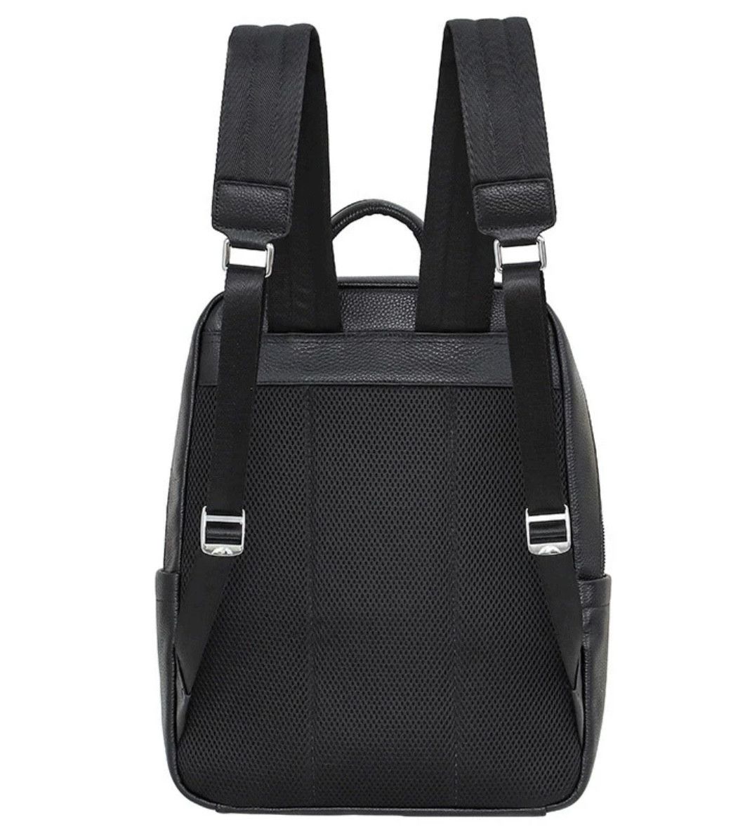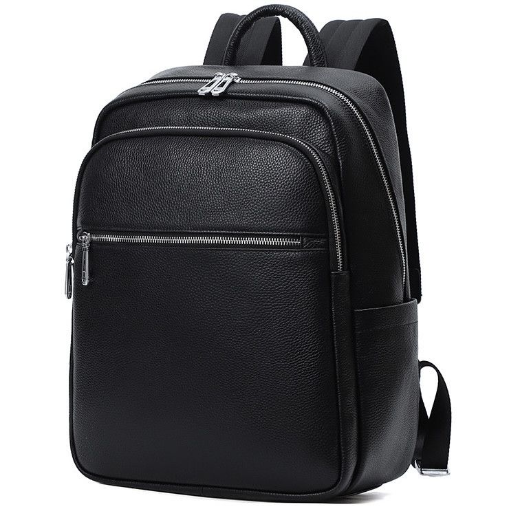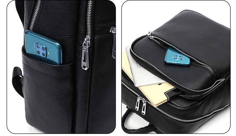 Чоловічий рюкзак від виробника Tiding Bag зроблений із натуральної шкіри чорного кольору. Ця модель вирізняється місткістю, стриманим дизайном і зручністю у використанні. Основне відділення закривається на блискавку з двома бігунками. У нього можна покласти папки з документами, ґаджет. З лицьового боку є велика кишеня на блискавці, де поміститься щоденник та інша канцелярія. Шлейки рюкзака зміцнені додатково текстильними вставками. Для комфорту під час носіння регулюються за довжиною.