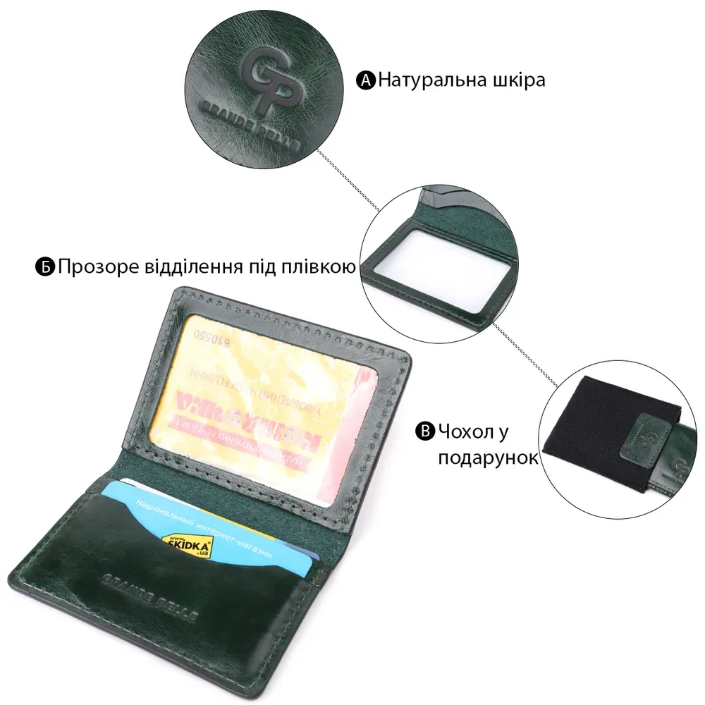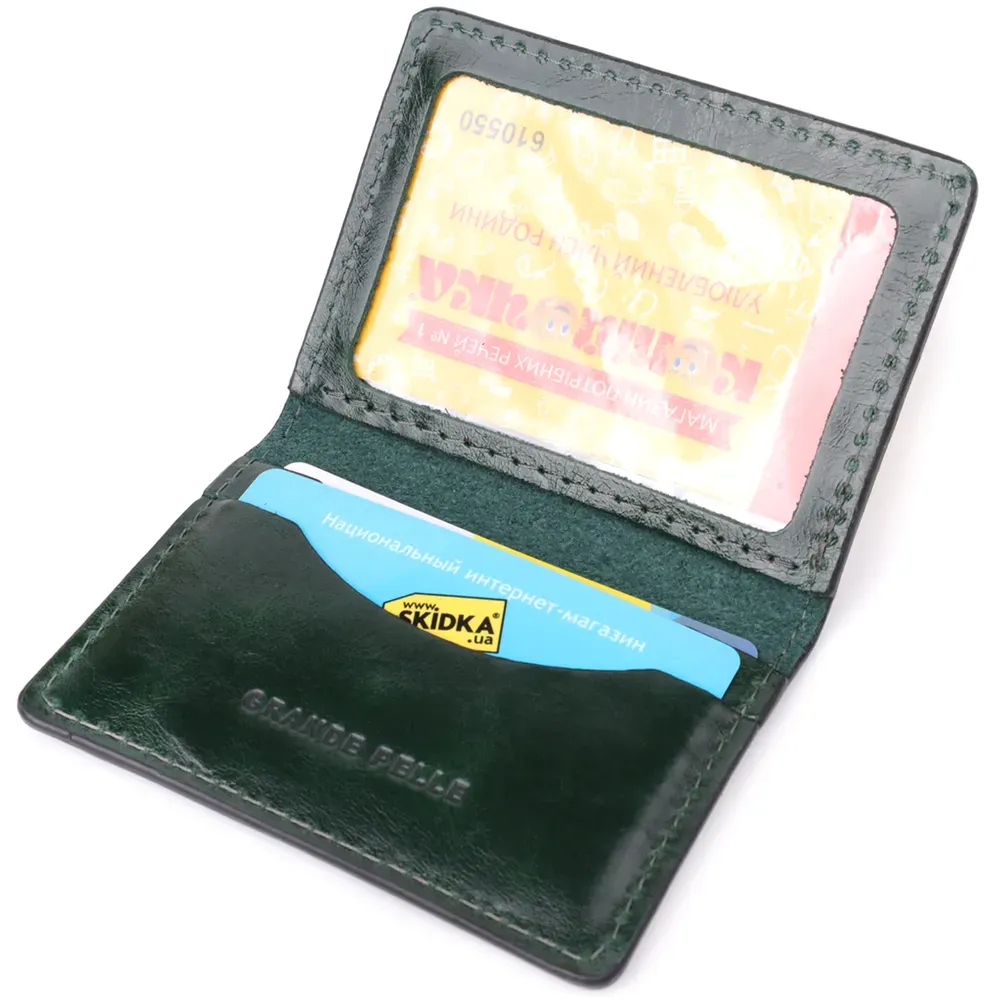 Чудова обкладинка на документи з натуральної гладкої шкіри GRANDE PELLE 22942 Зелений
