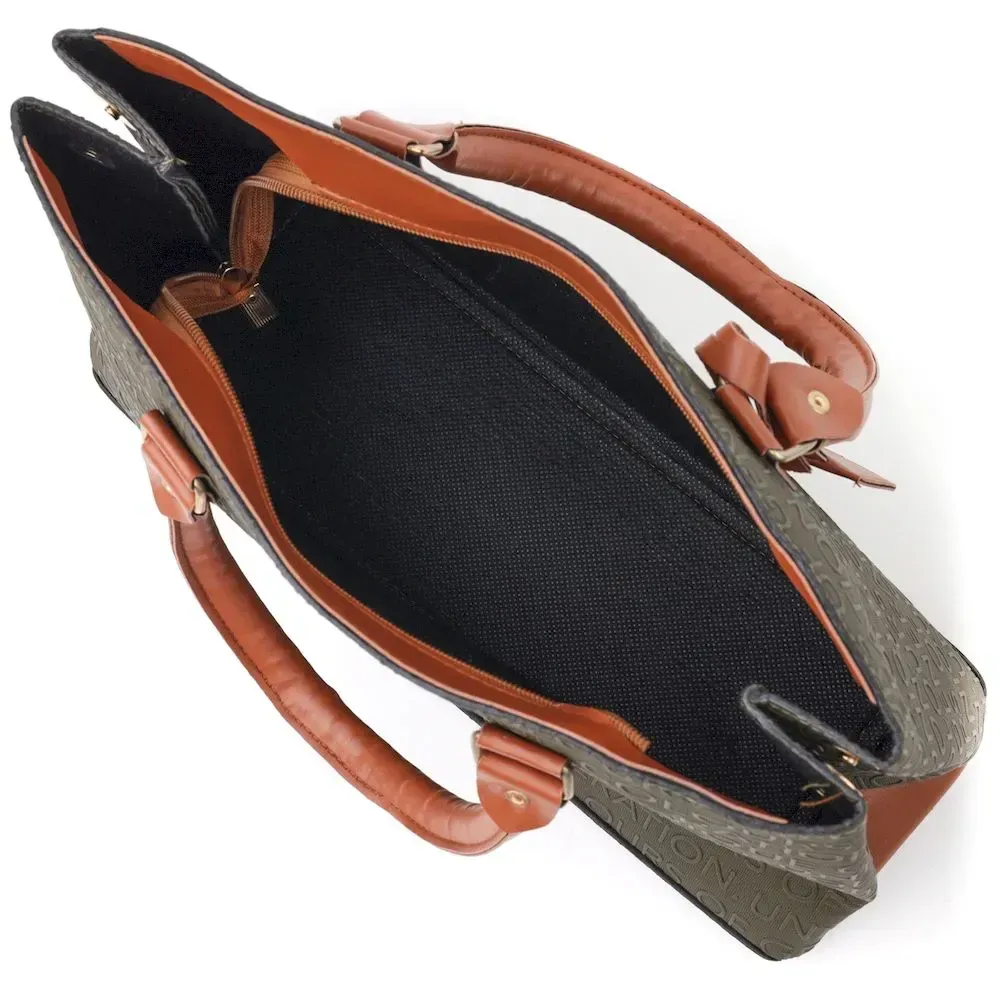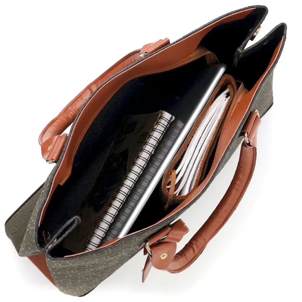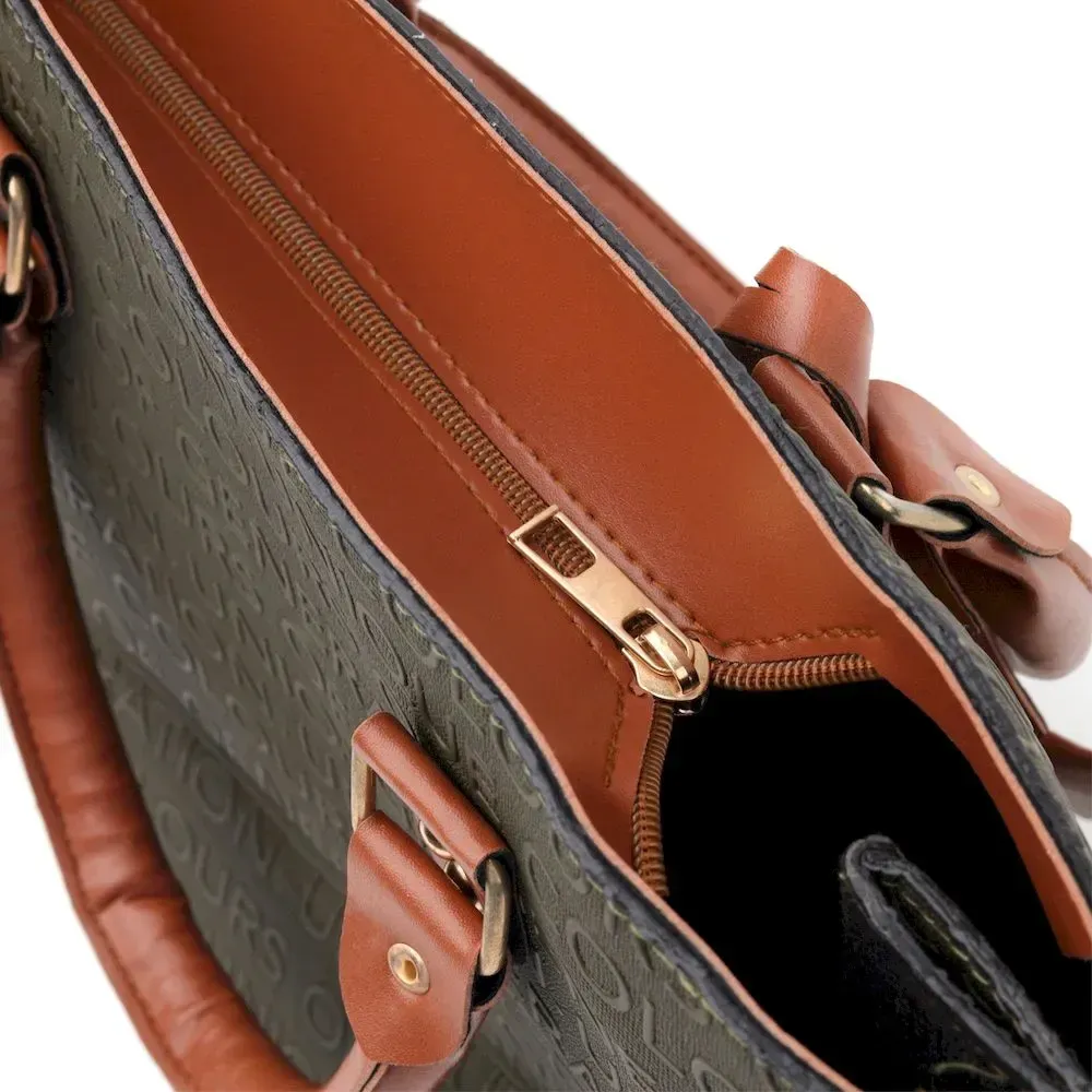 Вместительная деловая сумка с буквенным тиснением, горизонтального типа в комбинации оливкового и коричневого цвета. Сумка очень качественная и приятная на ощупь. Сумка имеет стильный дизайн. Аксессуар выглядит презентабельно и подойдет как под деловой, так и повседневный образ. Рекомендуем вам данную сумку по доступной стоимости в нашем магазине.