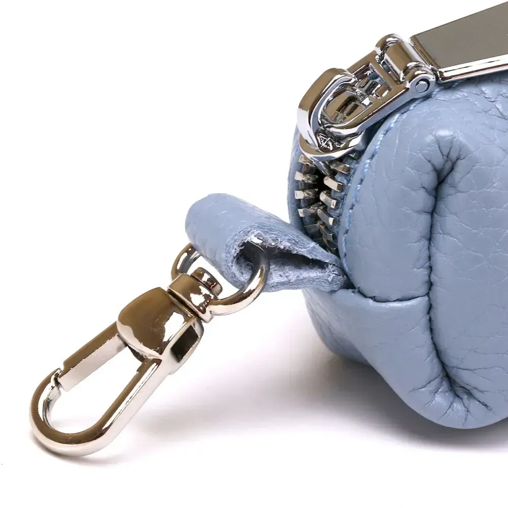 Добротная ключница для тех, кто хочет хранить свои ключи в надежном месте. Выполнена из натуральной высококлассной кожи с отменными эксплуатационными характеристиками. Внутри расположено металлическое кольцо для ключей, на внешнем боку есть карабин. Цвет изделия – голубой, что смотрится очень стильно и красиво.