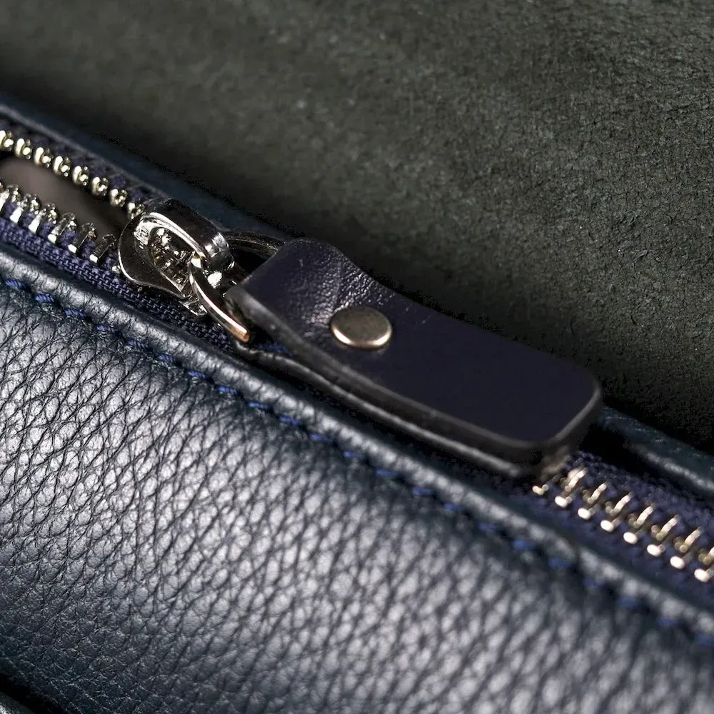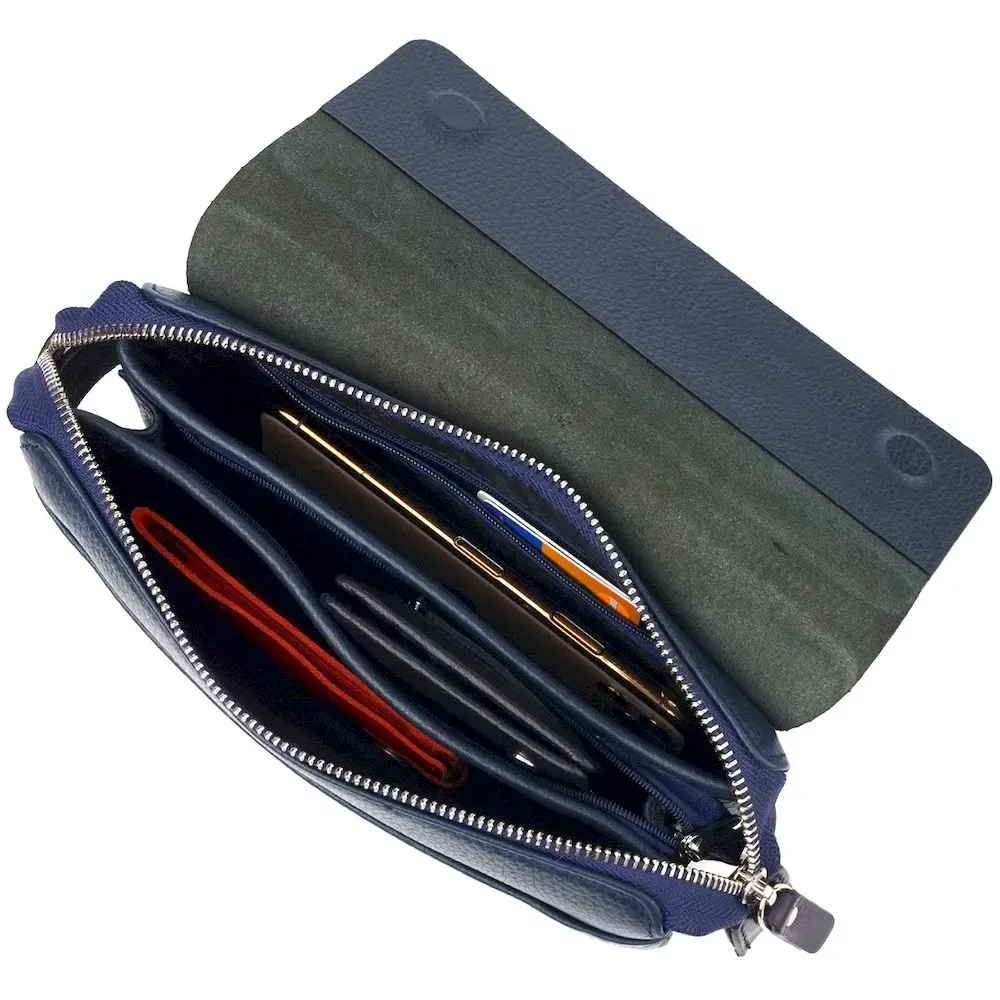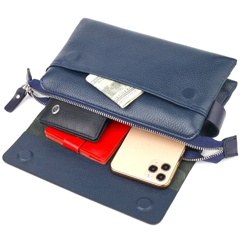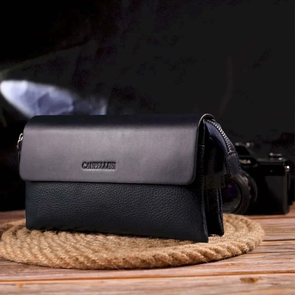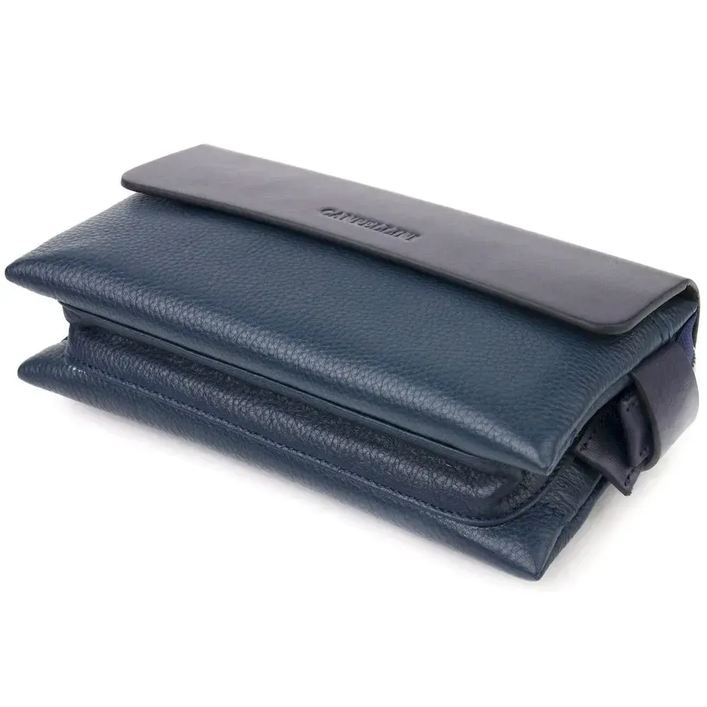 Добротный мужской клатч из натуральной комбинированной кожи CANPELLINI 21565 Синий