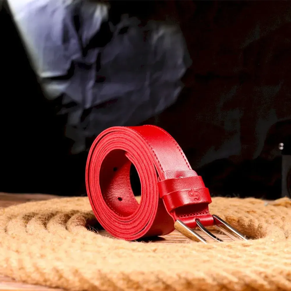 Добротный женский ремень под джинсы из натуральной кожи Grande Pelle 21455 Красный