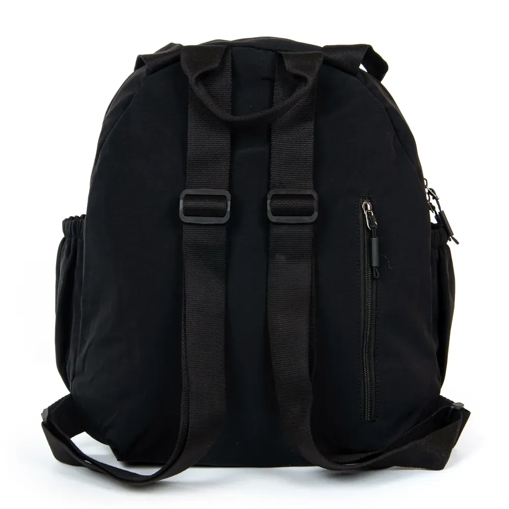 Одно отделение, закрывается на молнию. Внутри отделения есть большой карман на молнии и открытый карман. Снаружи сумки на торцах расположены два кармана для бутылок воды 0,5л. На фасаде и на обратной стороне находятся вместительные карманы на молнии. На фасаде также расположены два кармана для мелких вещей: один закрывается на молнию, а второй клапаном на магнитной кнопке.