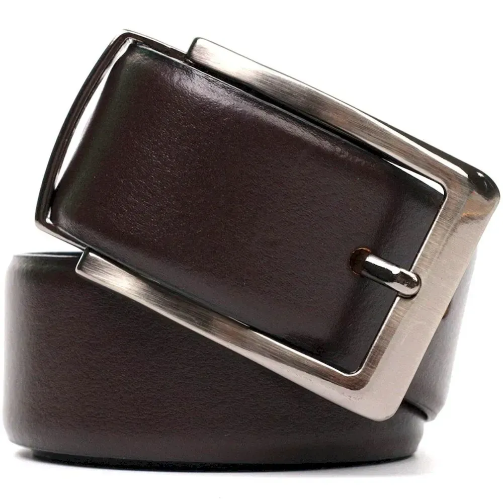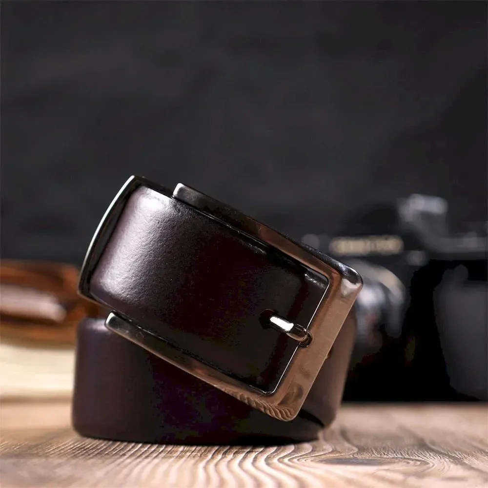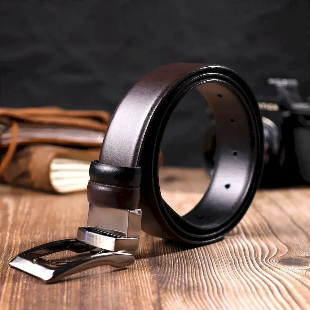 Двусторонний мужской ремень с пряжкой автомат из натуральной кожи BOND 22072 Коричневый