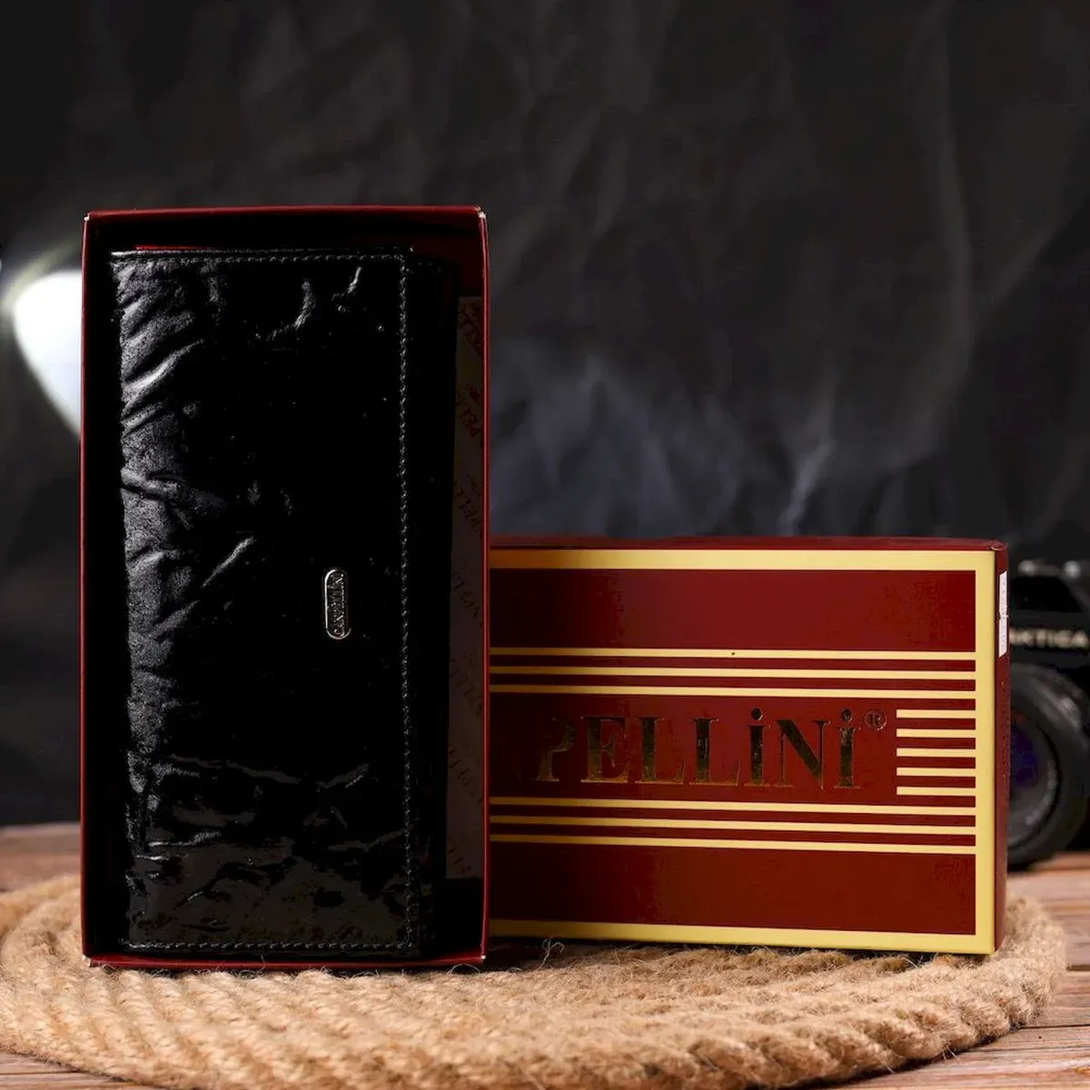 - кошелек упакован в фирменную коробочку.