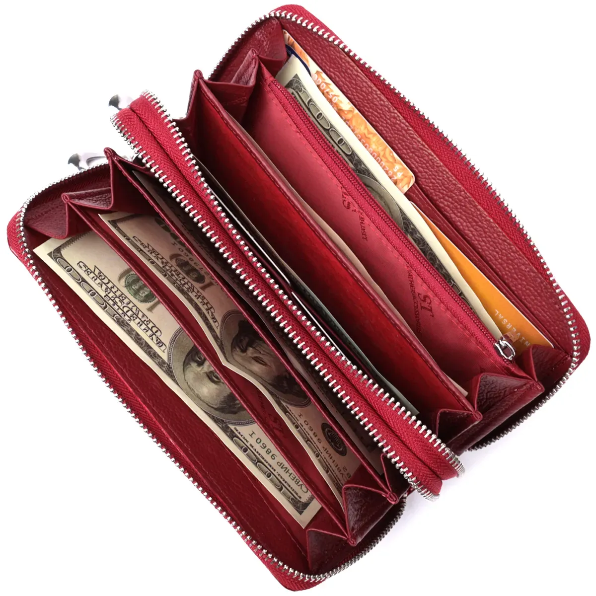 Фактурный клатч на два отделения из лакированной натуральной кожи ST Leather 22692 Красный