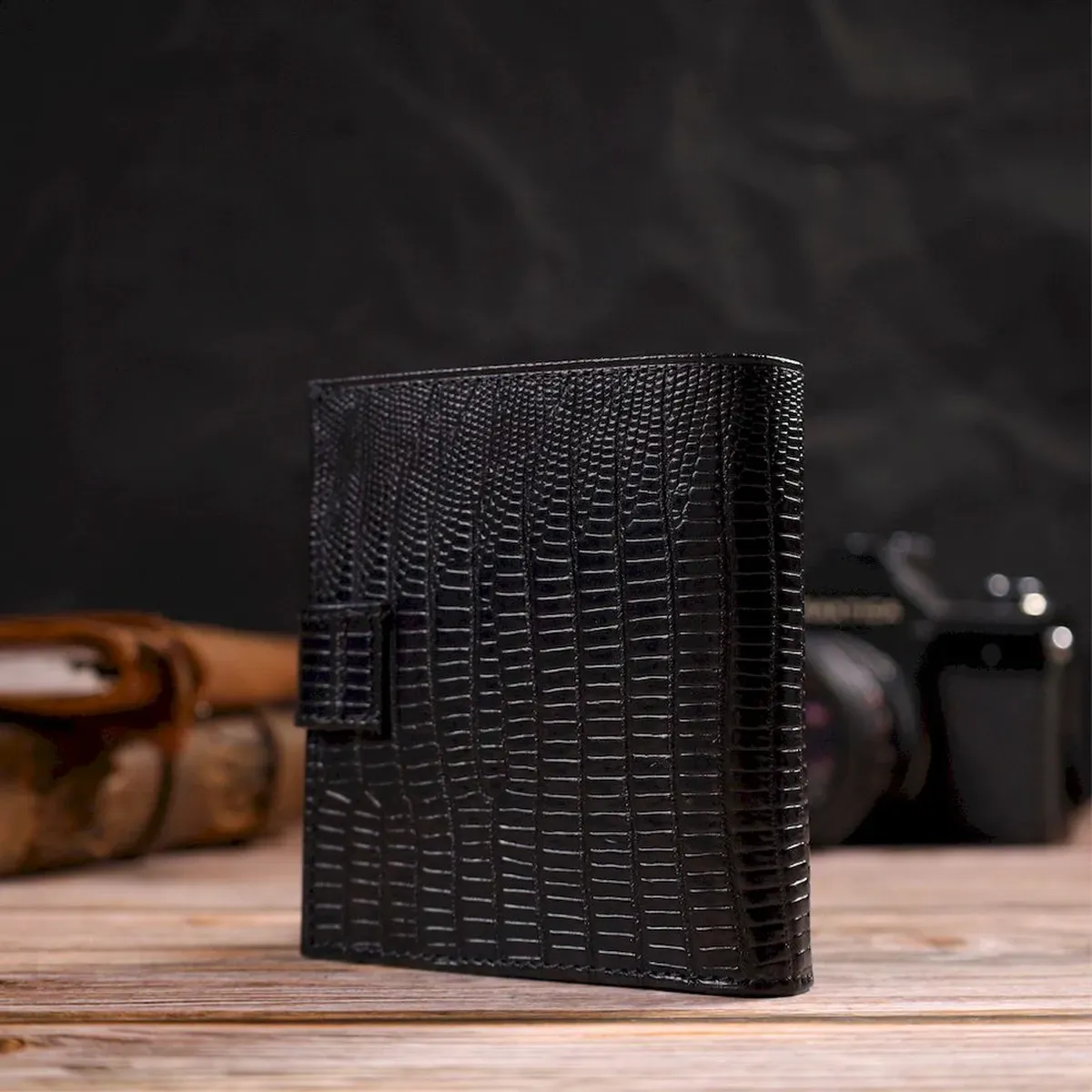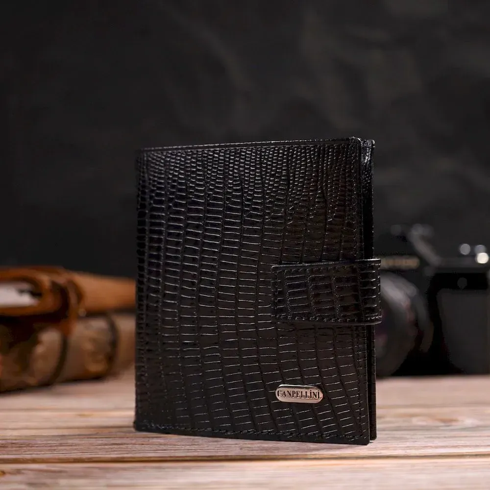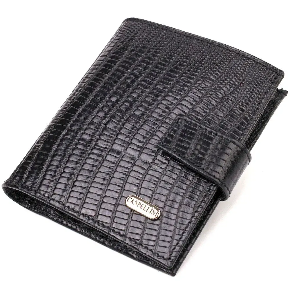 Фактурный мужской бумажник из натуральной кожи с тиснением под крокодила CANPELLINI 21745 Черный