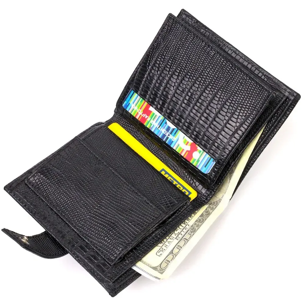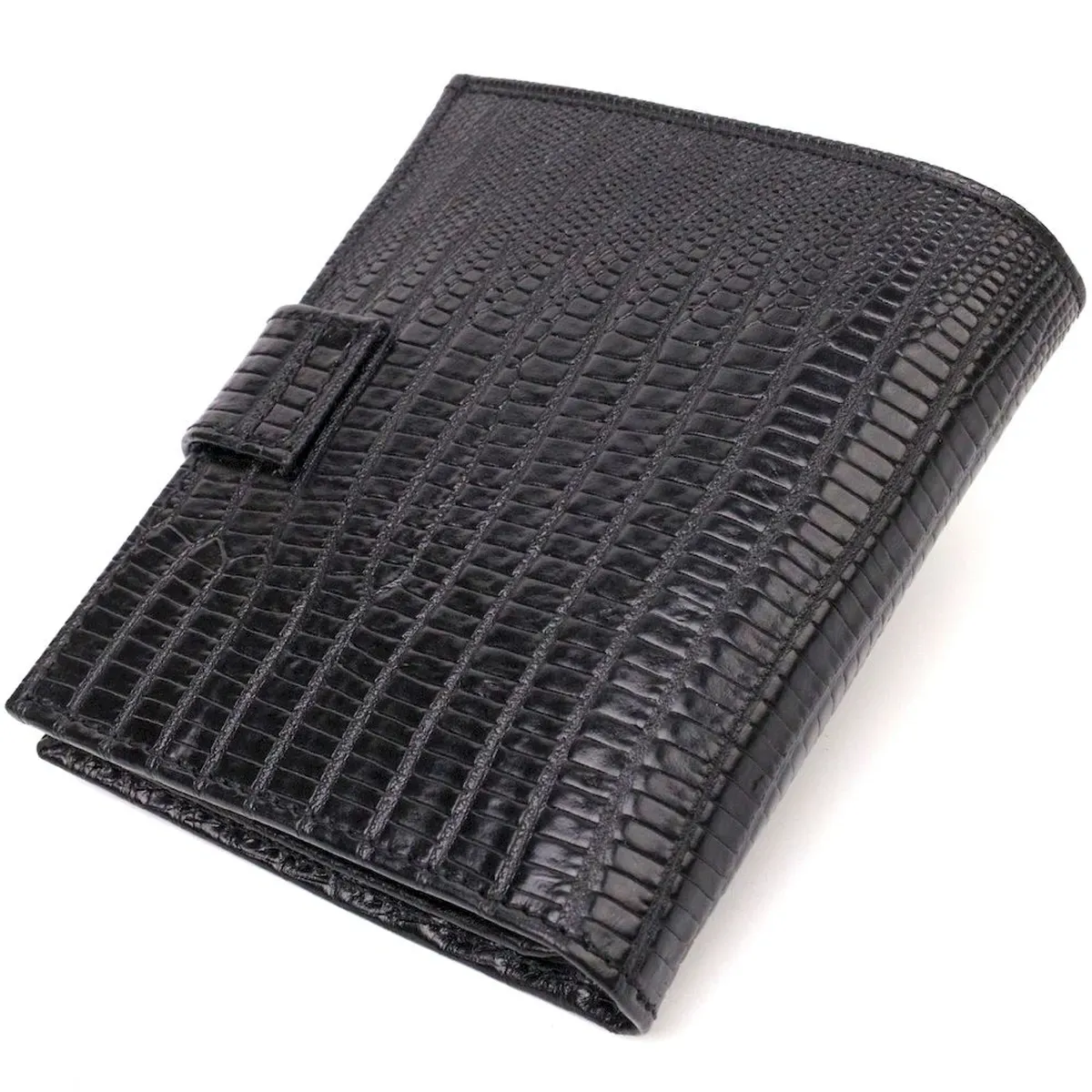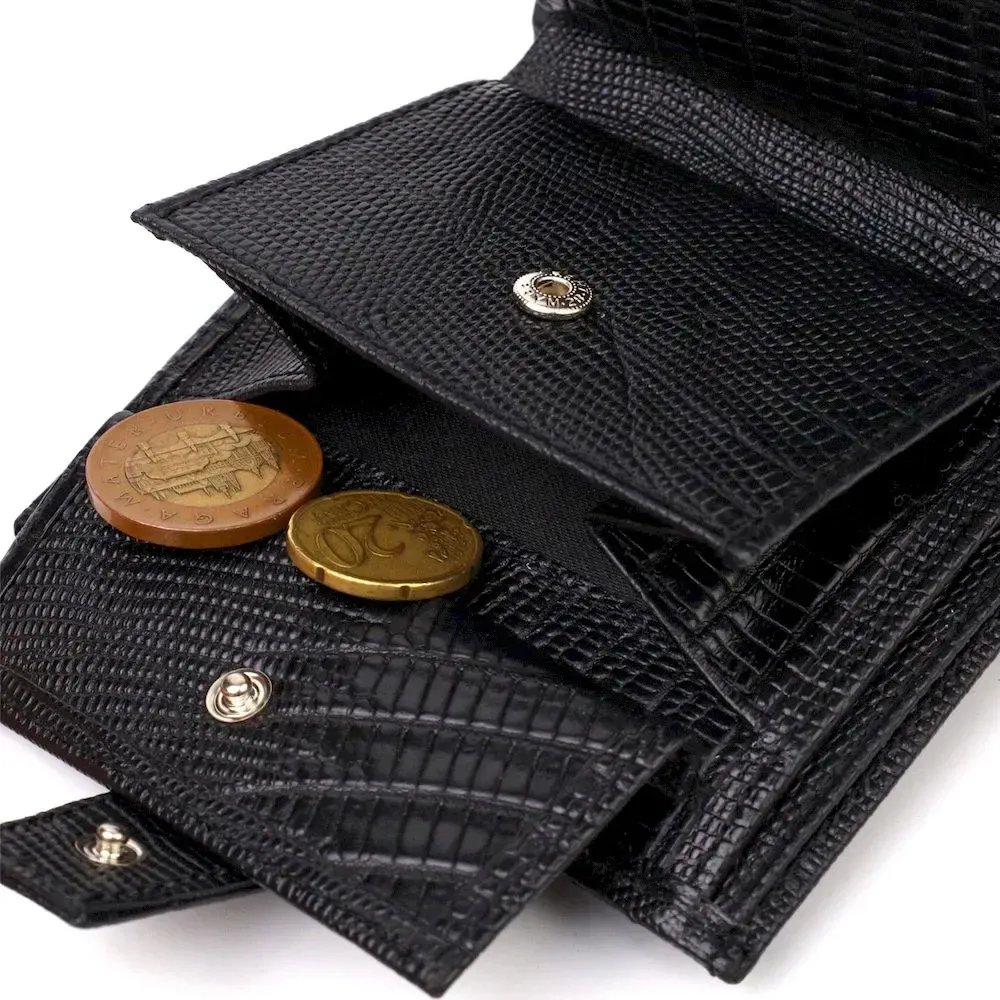 Фактурный мужской бумажник из натуральной кожи с тиснением под крокодила CANPELLINI 21745 Черный