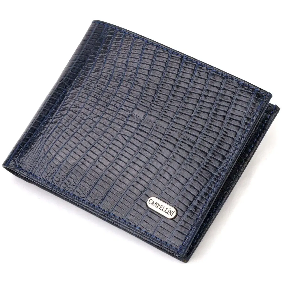 Фактурный стильный кошелек для мужчин без застежки горизонтального формата из натуральной кожи с тиснением CANPELLINI 21760 Синий