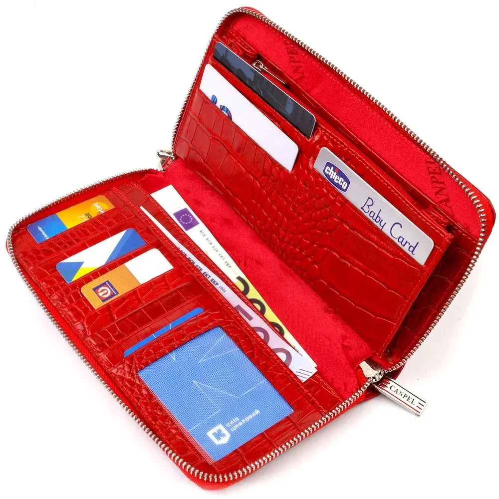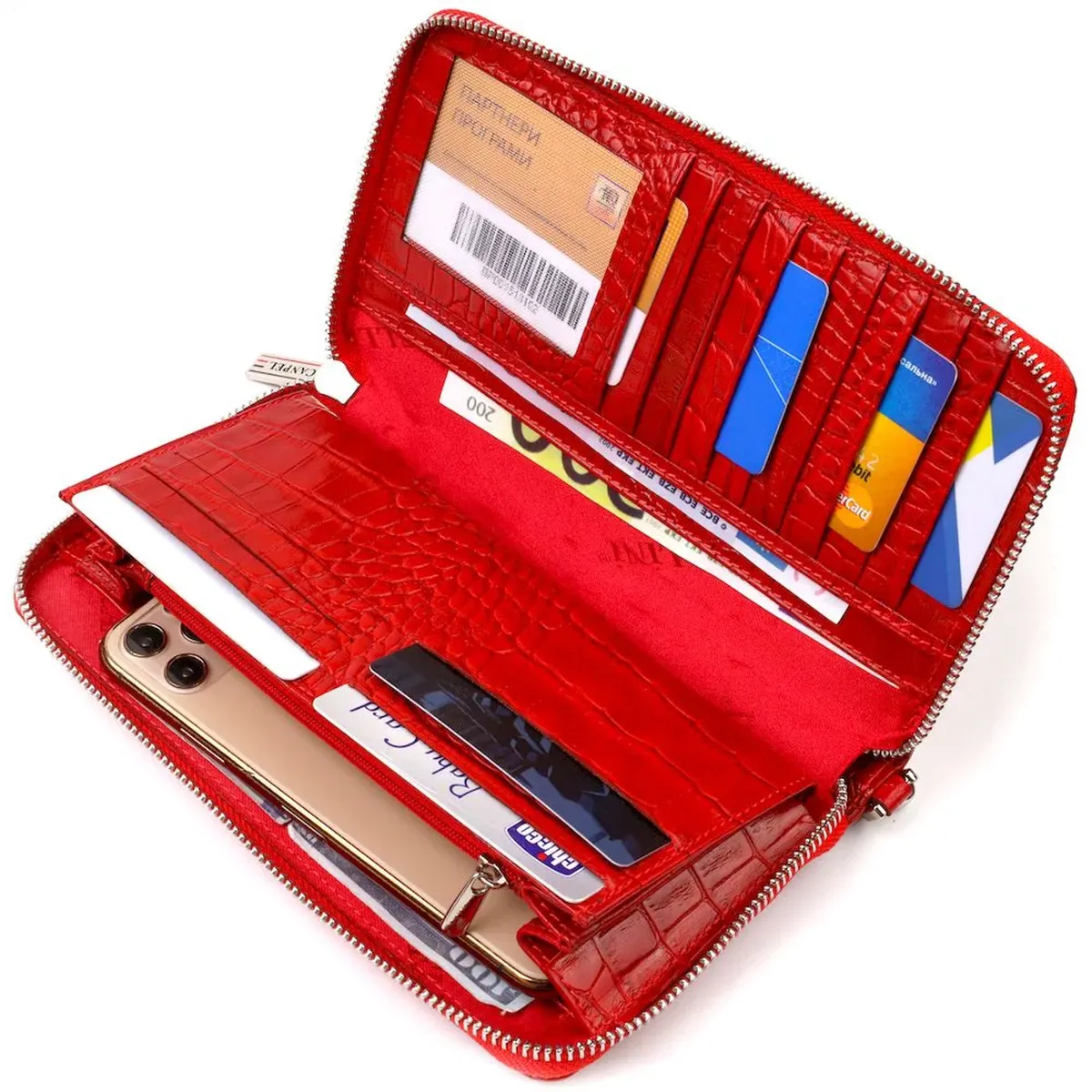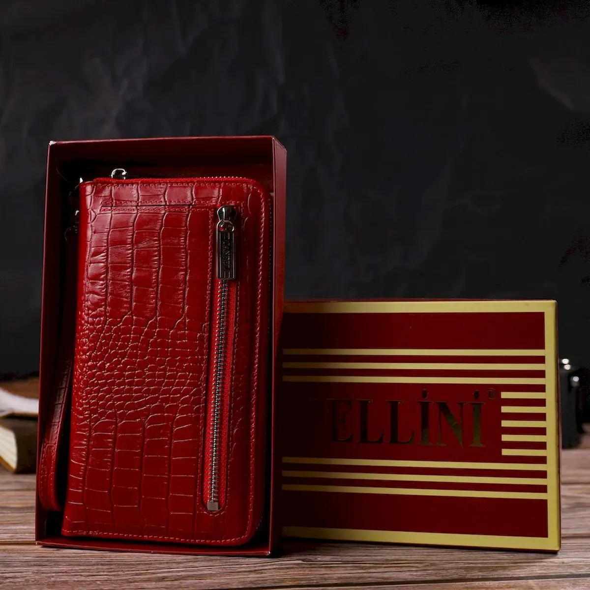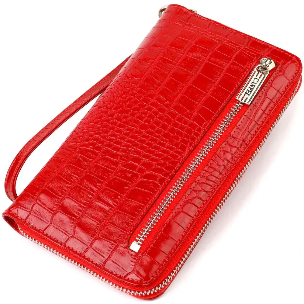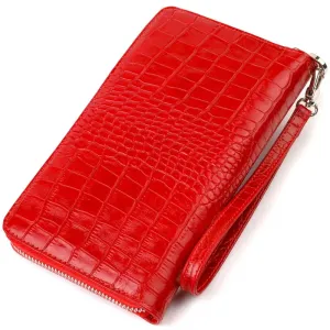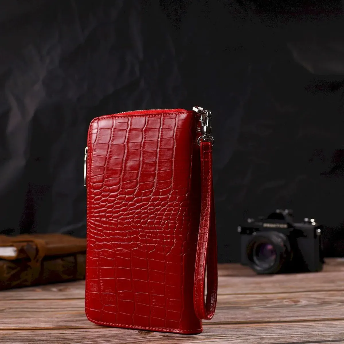 Функциональный клатч для женщин из натуральной кожи с тиснением под крокодила CANPELLINI 21920 Красный