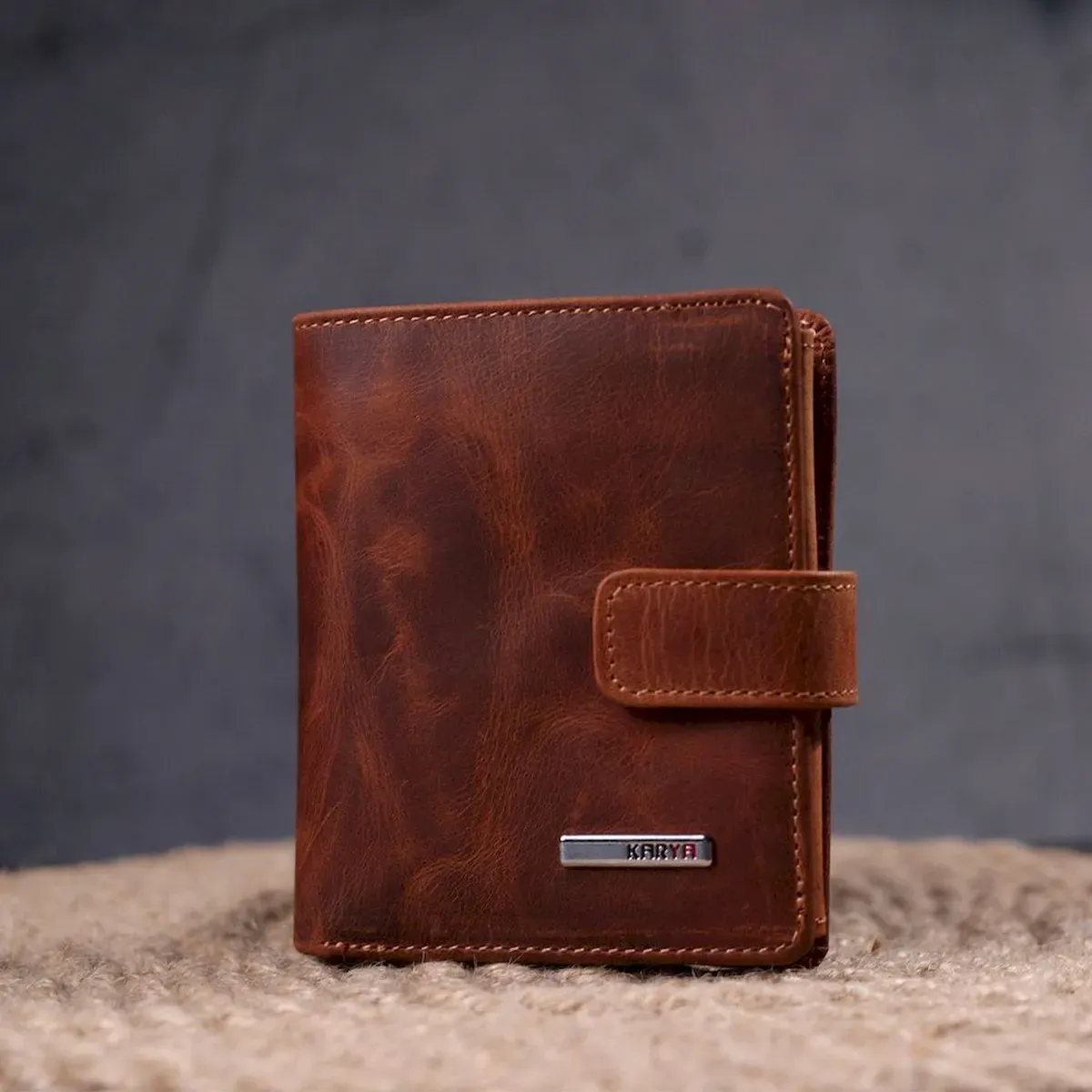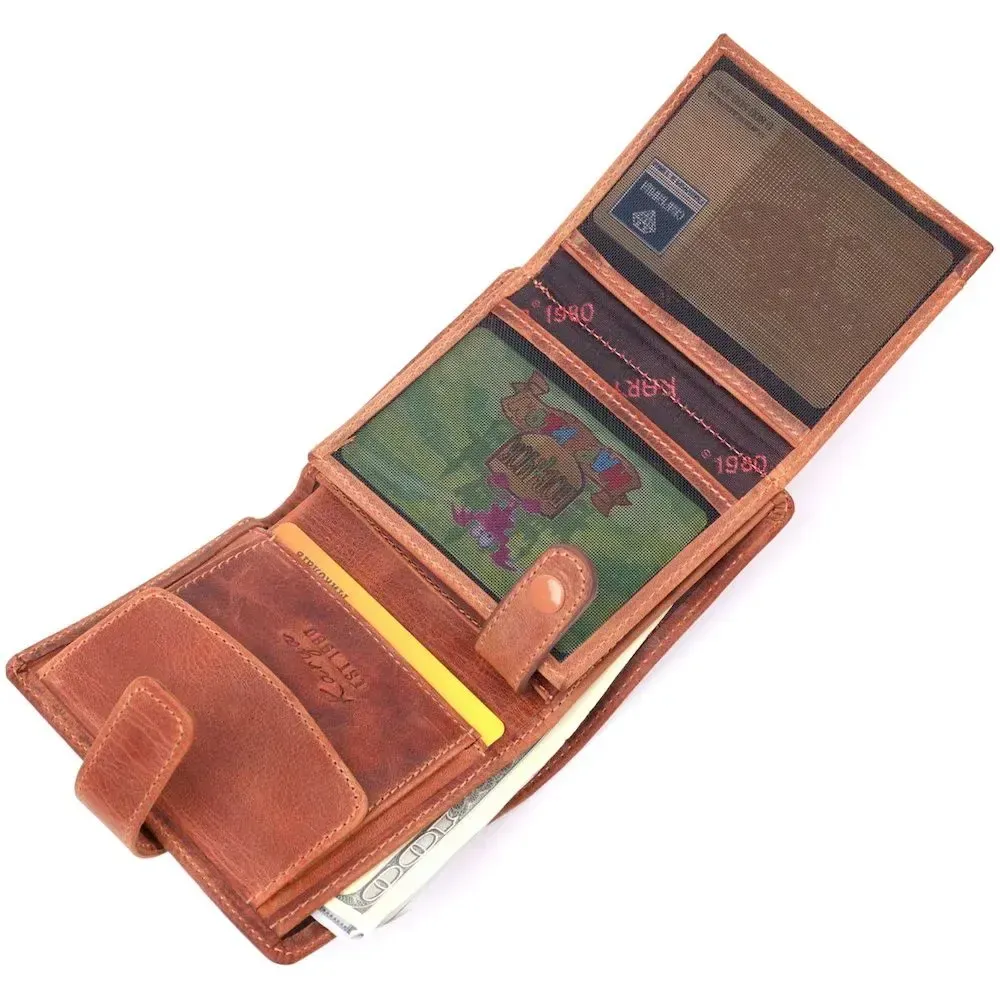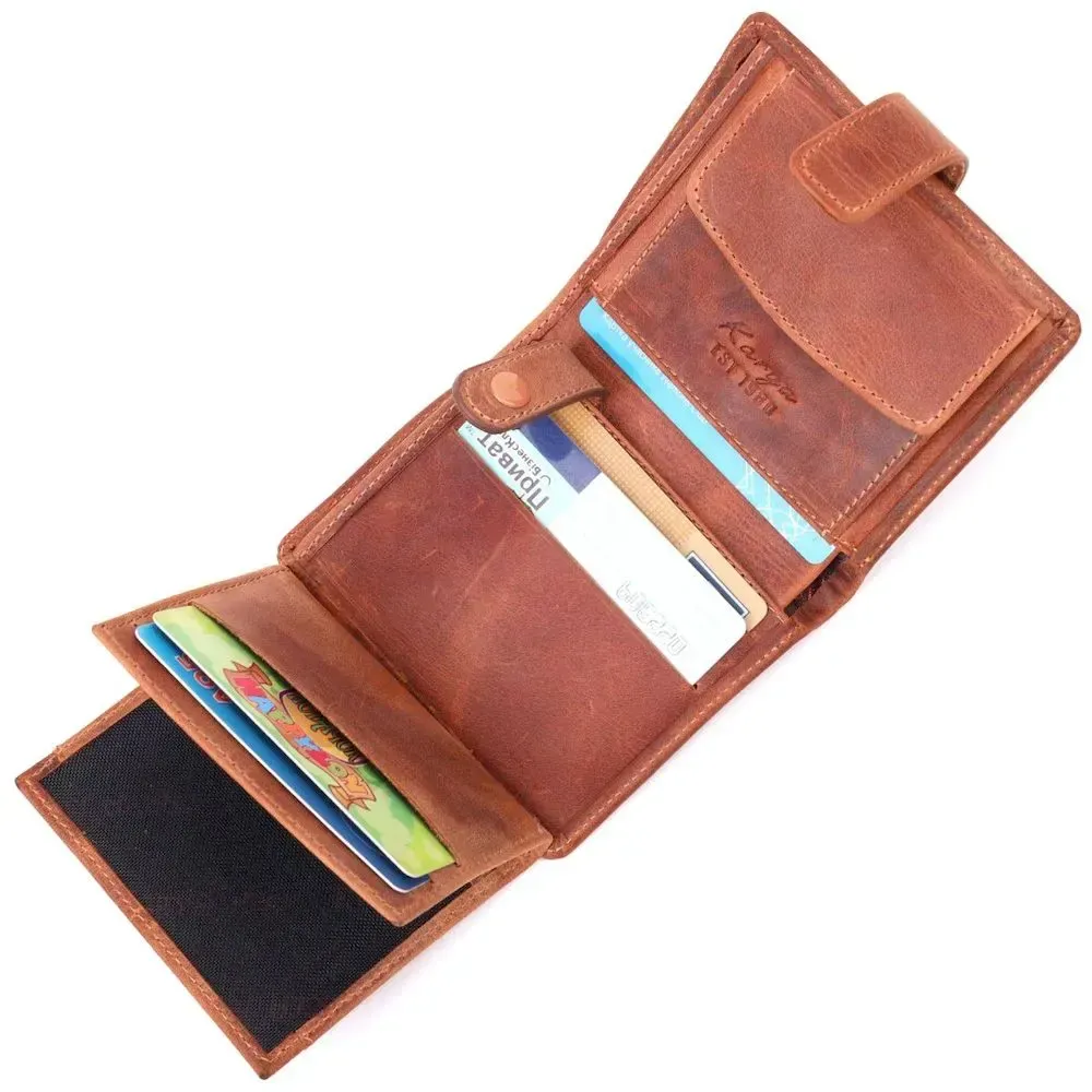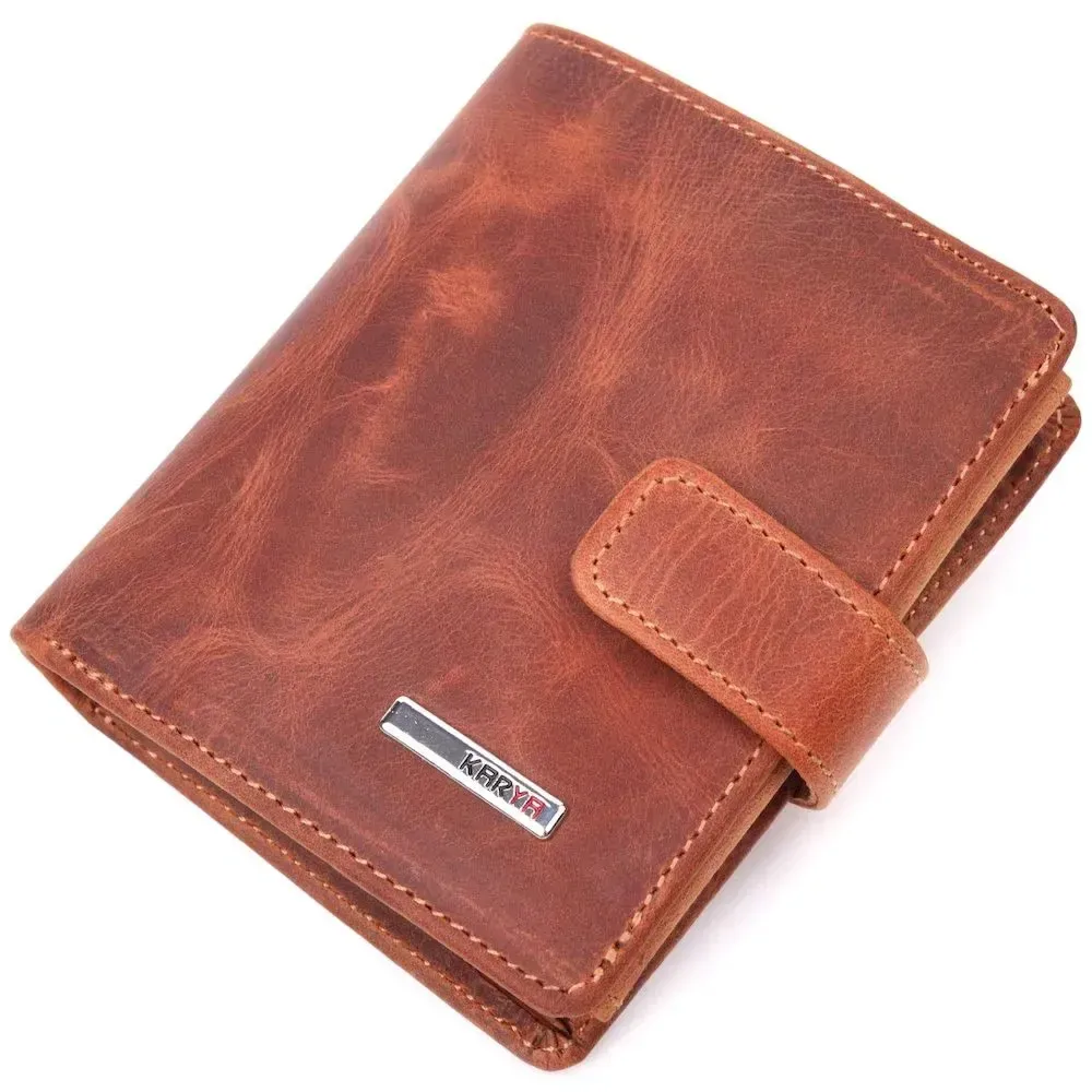 Функциональный мужской кошелек в винтажной коже KARYA 21369 Рыжий