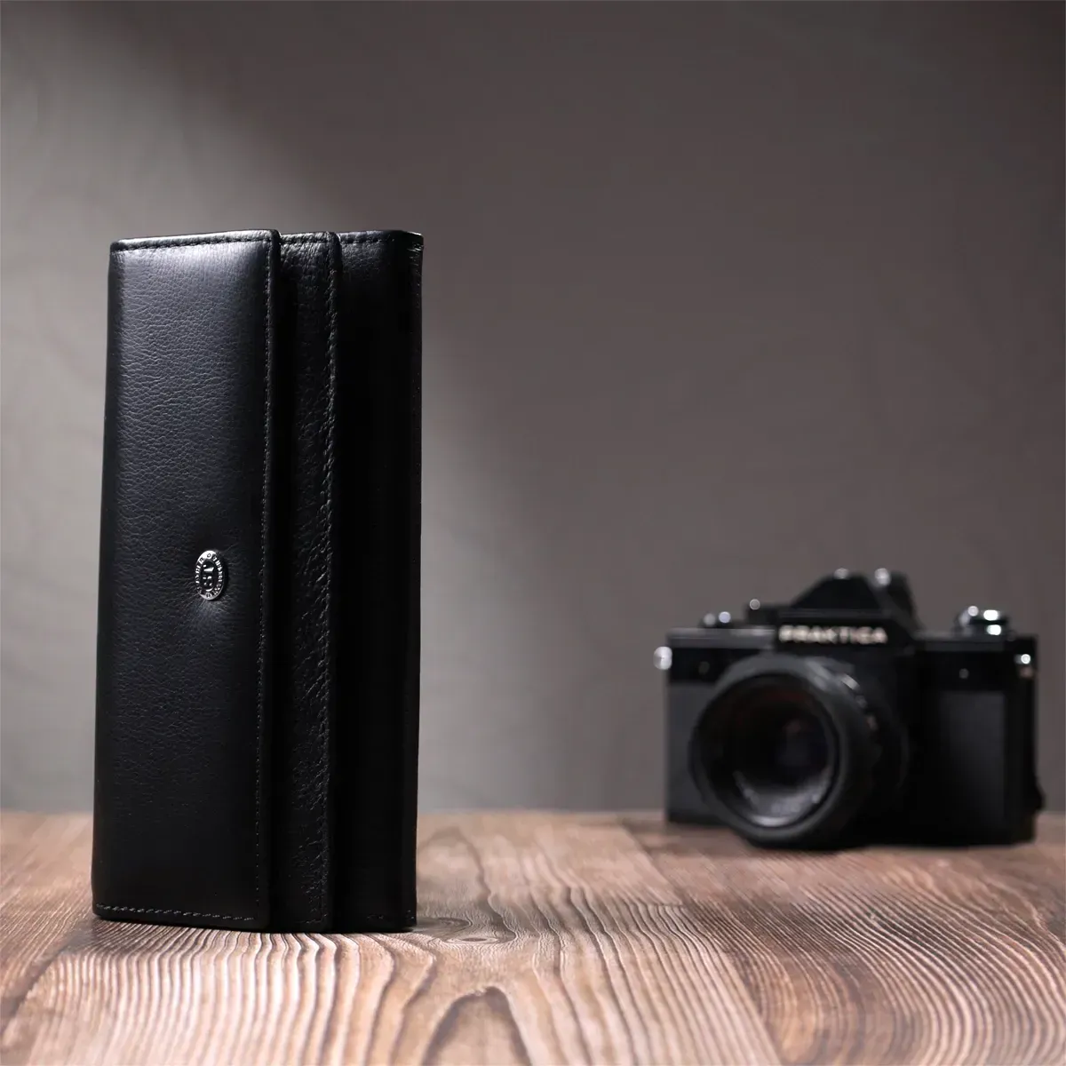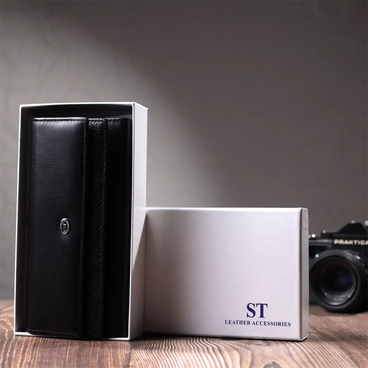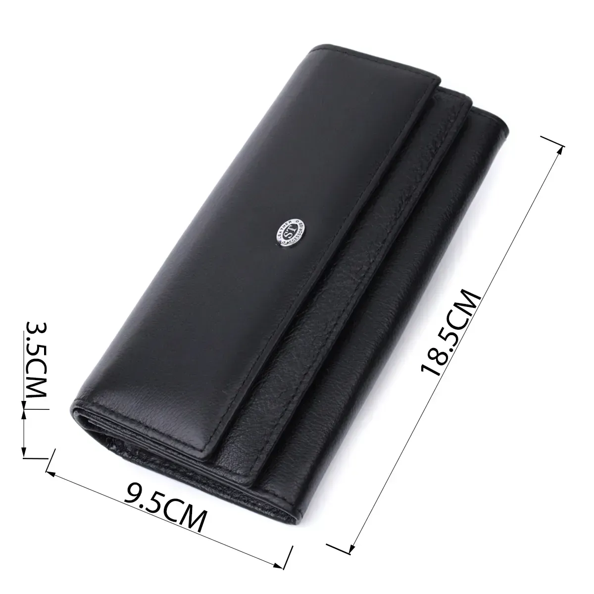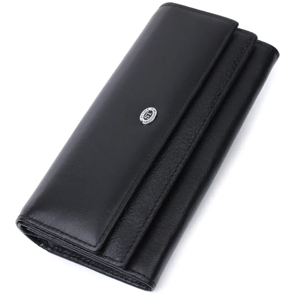 Функциональный женский кошелек с двумя клапанами из натуральной кожи ST Leather 22696 Черный