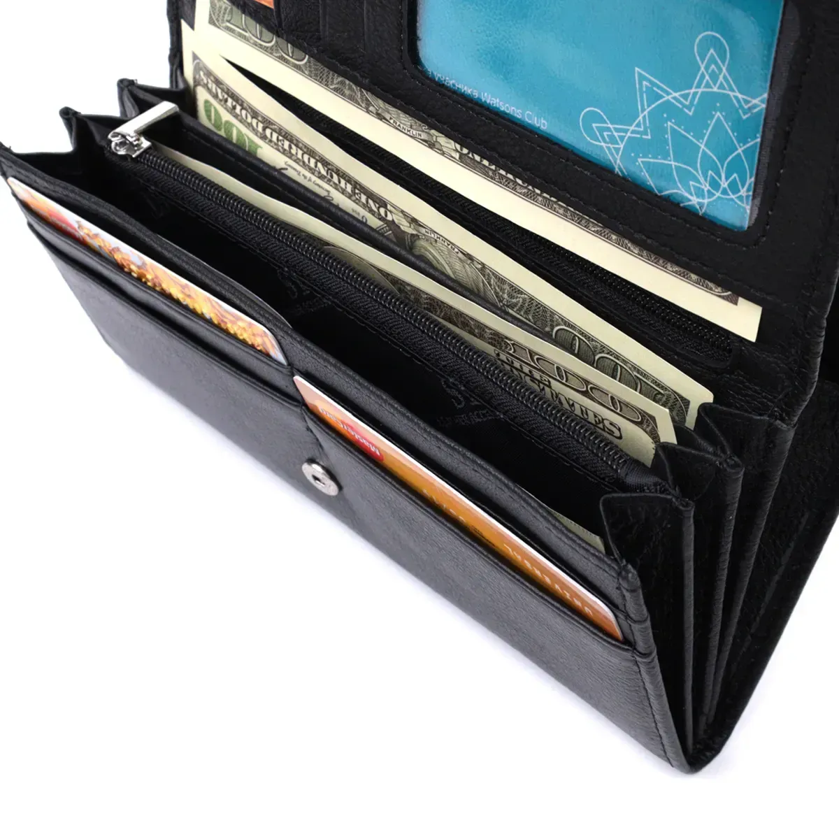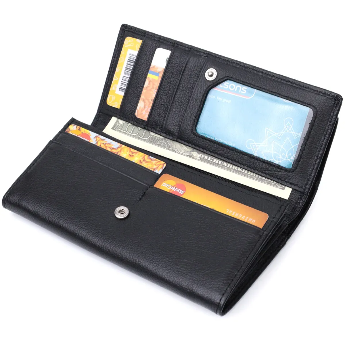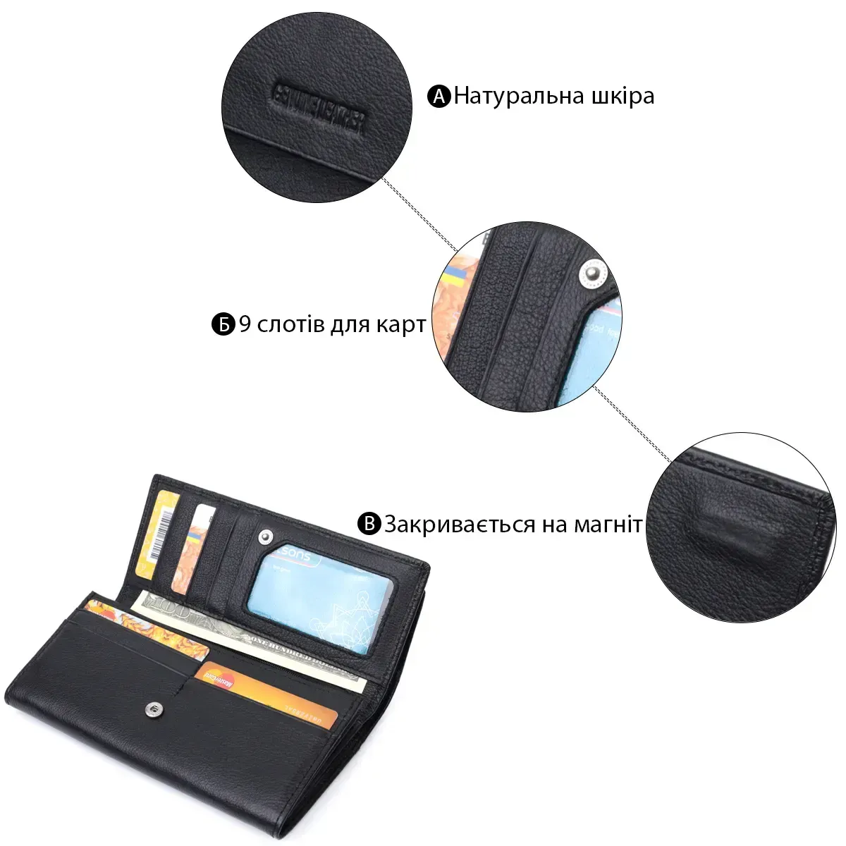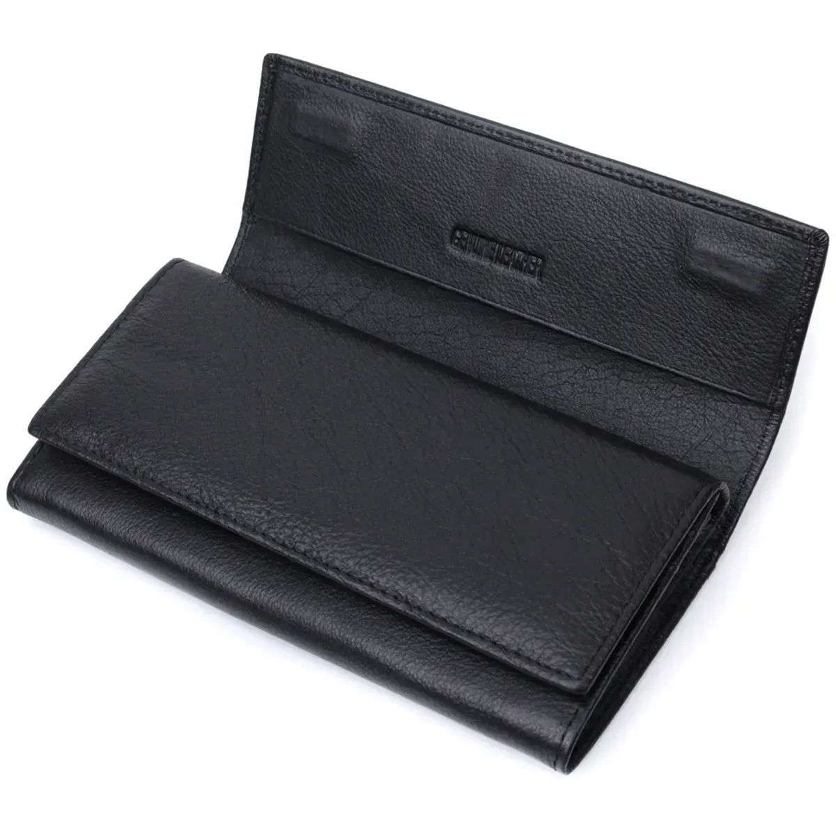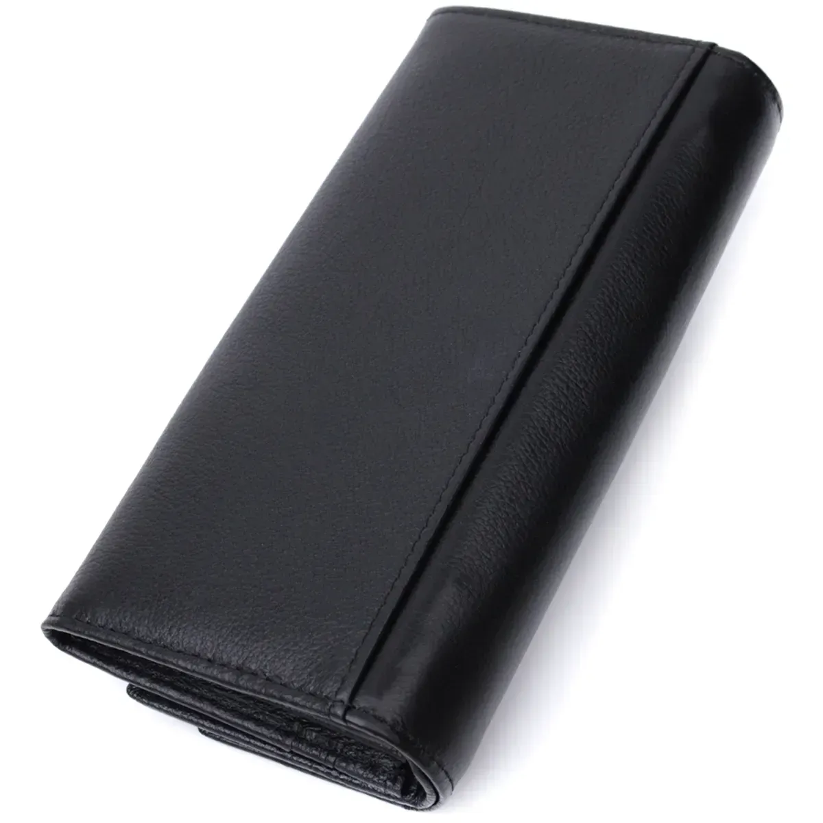 Функциональный женский кошелек с двумя клапанами из натуральной кожи ST Leather 22696 Черный