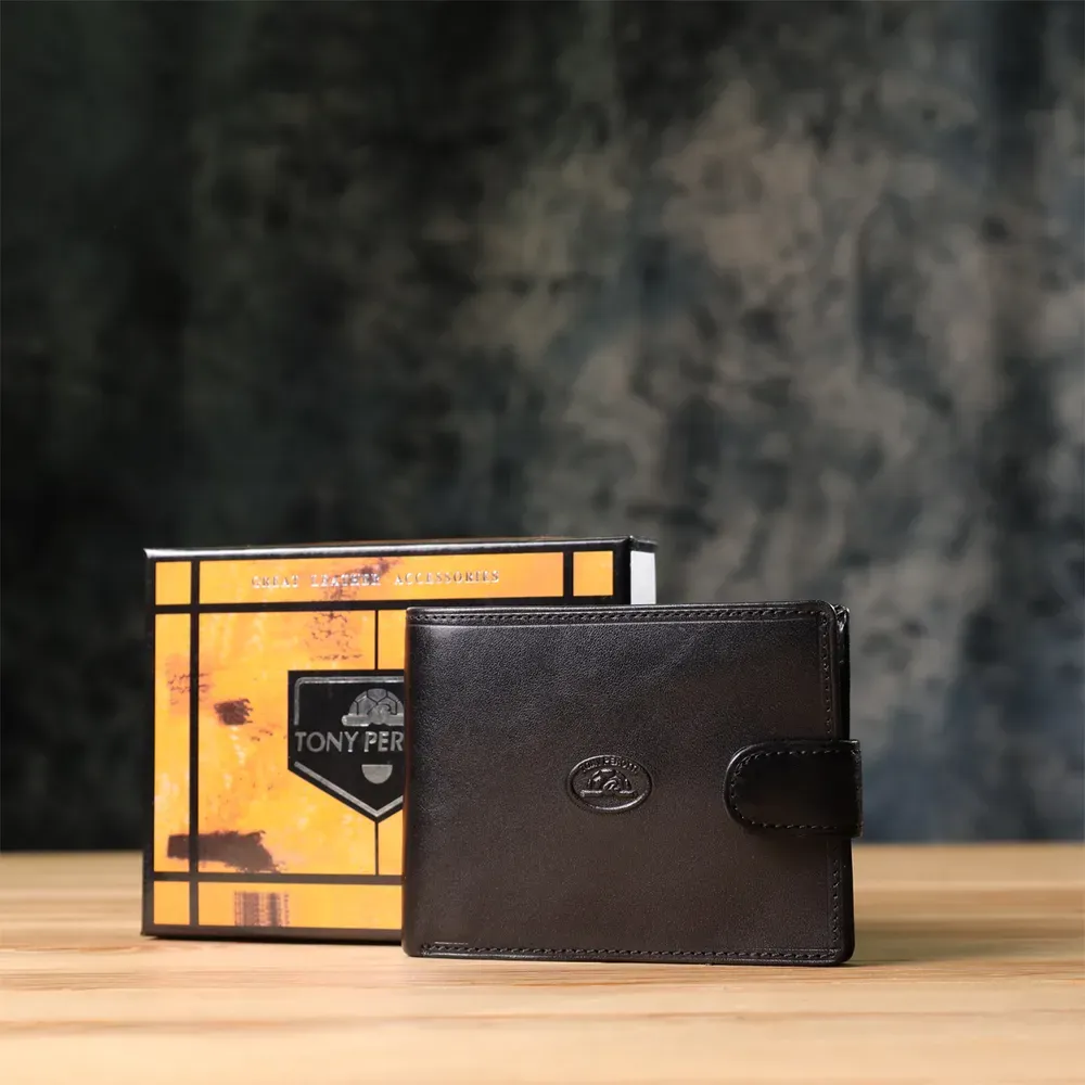 Чоловічий гаманець із гладкої натуральної шкіри від італійського бренду Tony Perotti – практичний та стильний аксесуар для повсякденного використання. Продумана організація внутрішнього простору, надійне закриття на хлястик та тиснення бренду підкреслюють статус та смак власника. Висока якість матеріалів та елегантний дизайн роблять гаманець ідеальним подарунком для чоловіка.