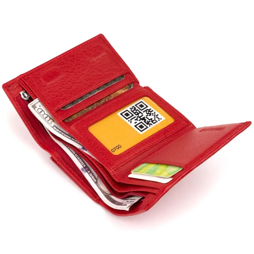 Стильное портмоне в ярком красном цвете добавит вам уверенности в себе. Красный цвет выбирают поклонники ярких аксессуаров. Портмоне удобного среднего размера из натуральной кожи высочайшего качества. Кожаное портмоне очень практичное и служит достаточно долго. Гладкая кожа не требует к себе особенного ухода. Аксессуар дополнен всем самым необходимым функционалом. Просторные карманы разместят все ваши мелочи в порядке. Внутри аксессуар из плотного текстиля. Укомплектован кошелек в фирменную картонную коробку белого цвета. Изделие станет идеальным подарком для девушки любого возраста.