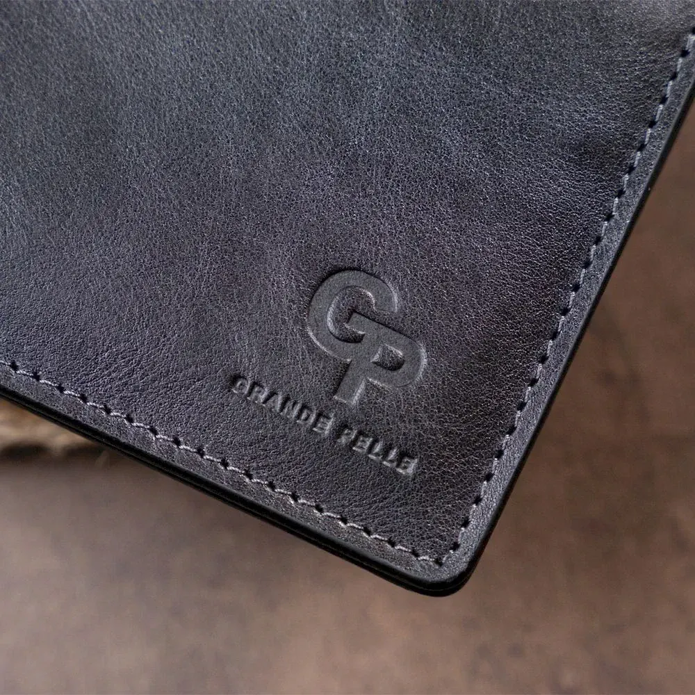 Горизонтальное портмоне в гладкой коже без застежки GRANDE PELLE 11311 Черное