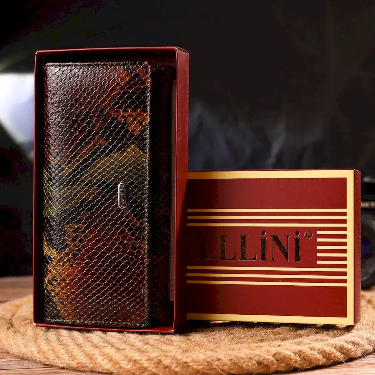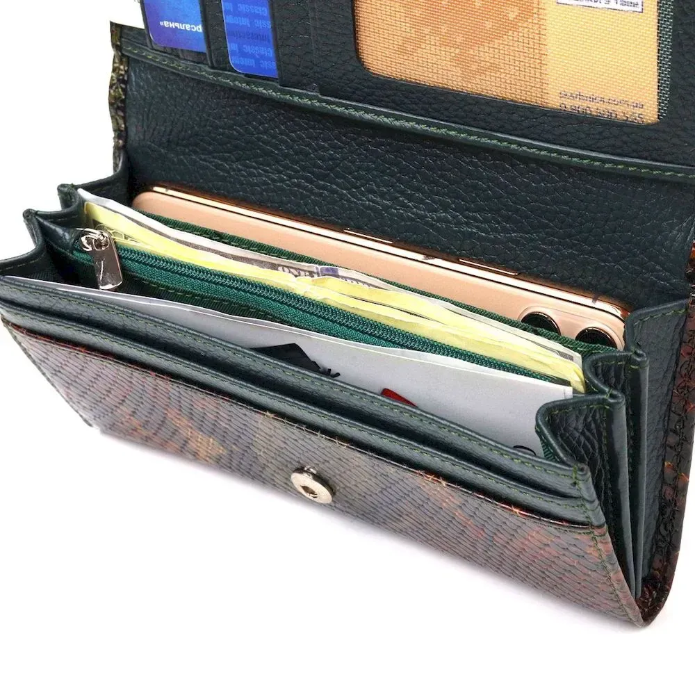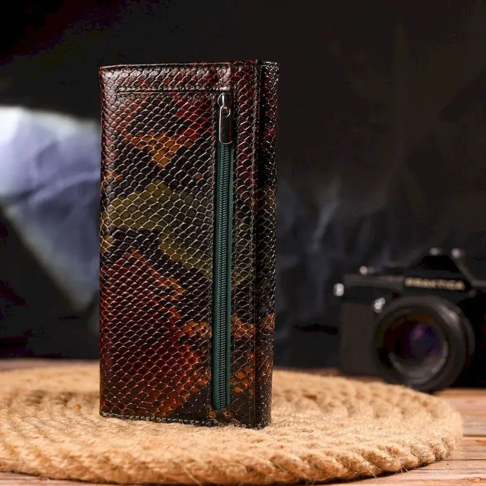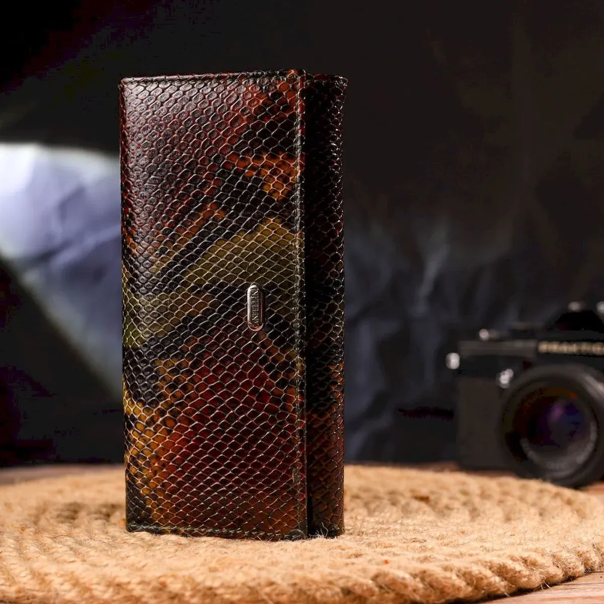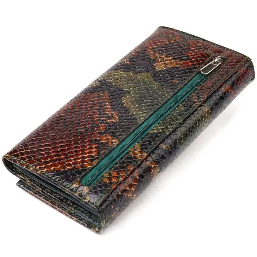 Горизонтальный женский кошелек из натуральной кожи с тиснением под змею CANPELLINI 21648 Разноцветный
