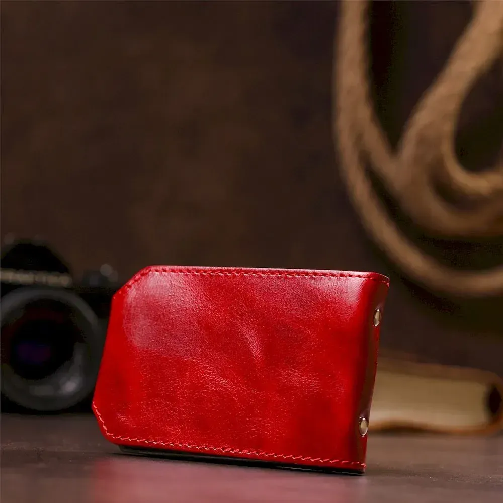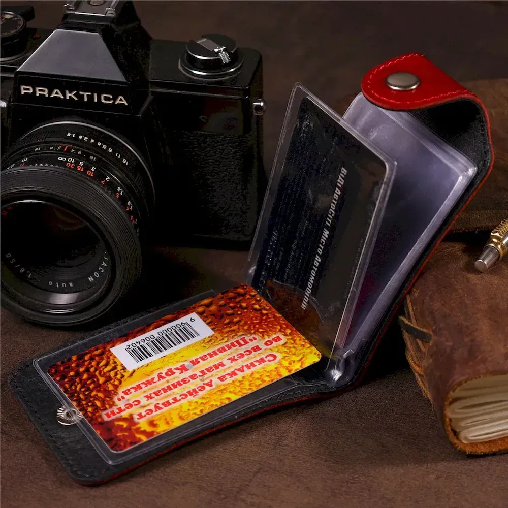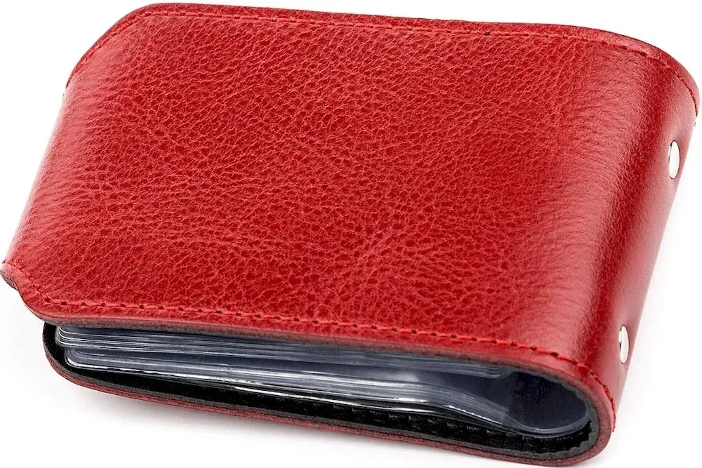 Отличная визитница из натуральной кожи, мягкой и приятной на ощупь. Аксессуар прошит прочной красной нитью, что отлично вписывается в дизайн и продлевает срок службы изделия.