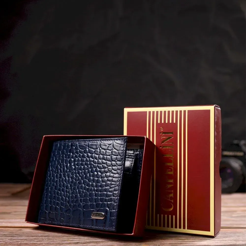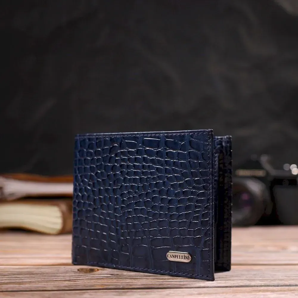 Интересное мужское портмоне из натуральной фактурной кожи CANPELLINI 21774 Синее