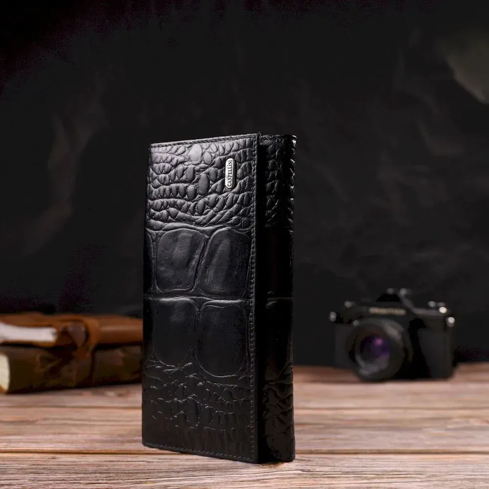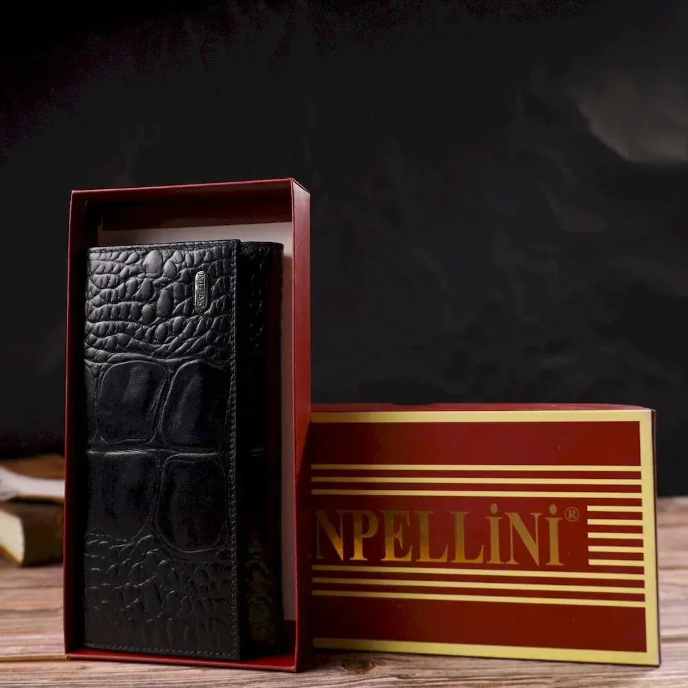Интересное портмоне унисекс из натуральной крупнозернистой кожи CANPELLINI 21853 Черное