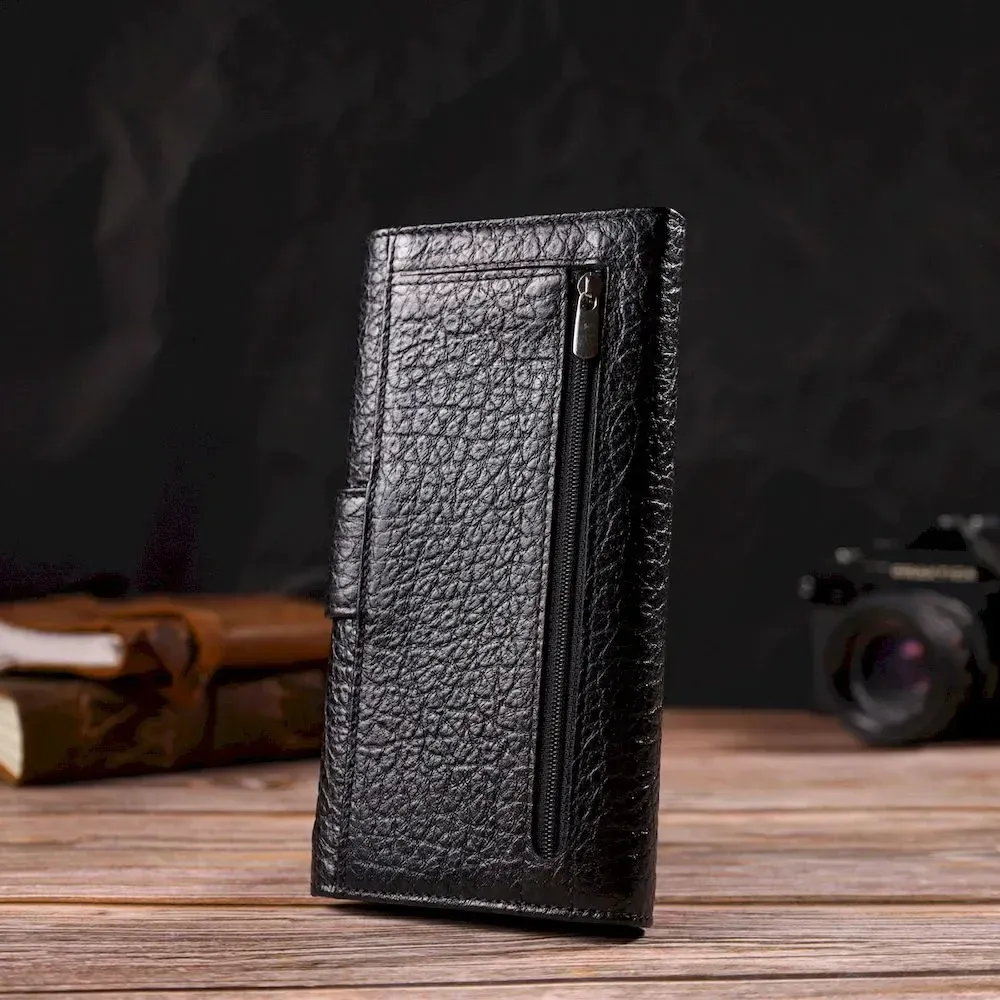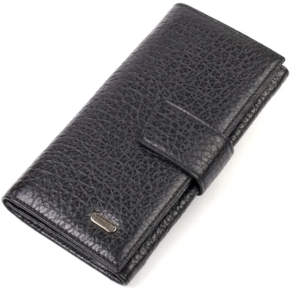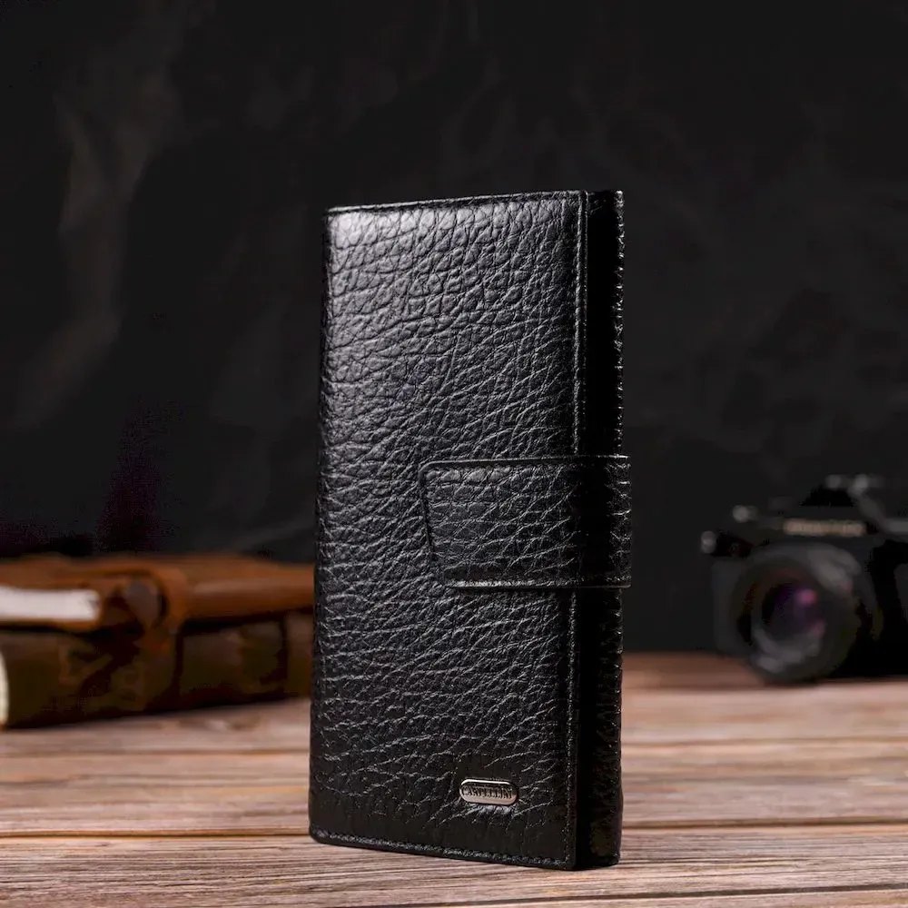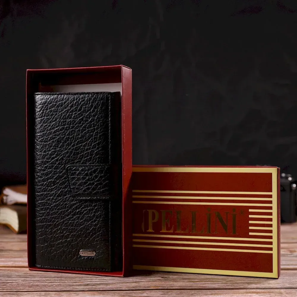 Интересное вертикальное мужское портмоне из натуральной крупнозернистой кожи CANPELLINI 21838 Черное