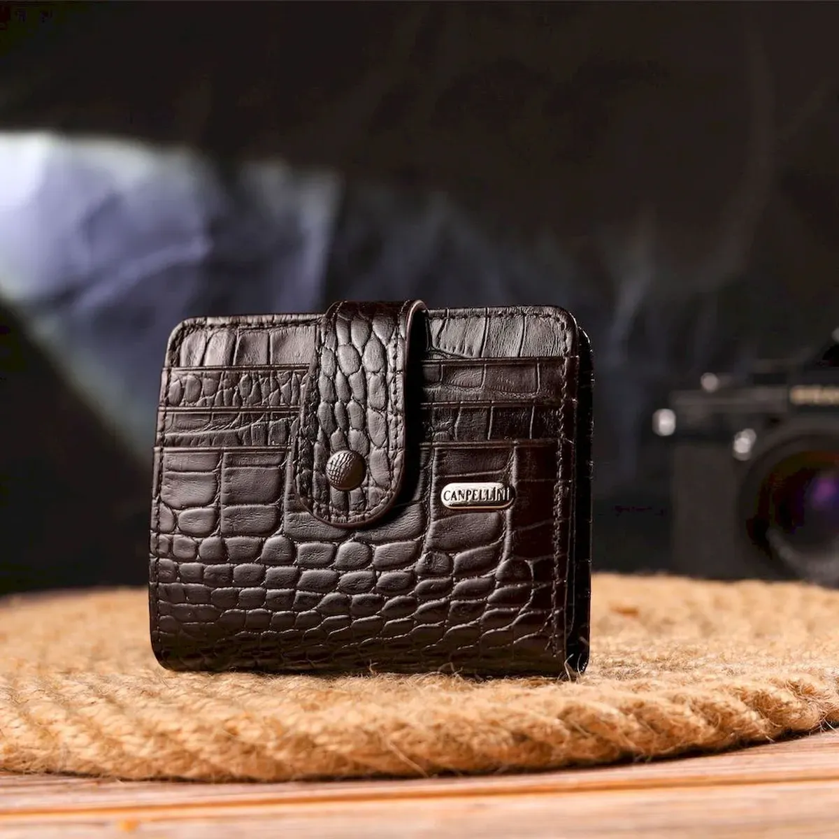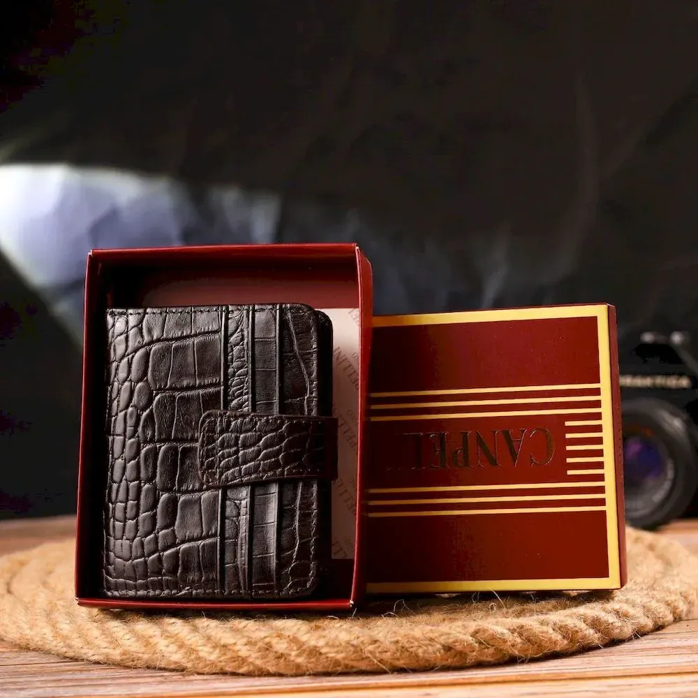 Интересный кошелек для мужчин из натуральной кожи с тиснением под крокодила CANPELLINI 21689 Коричневый