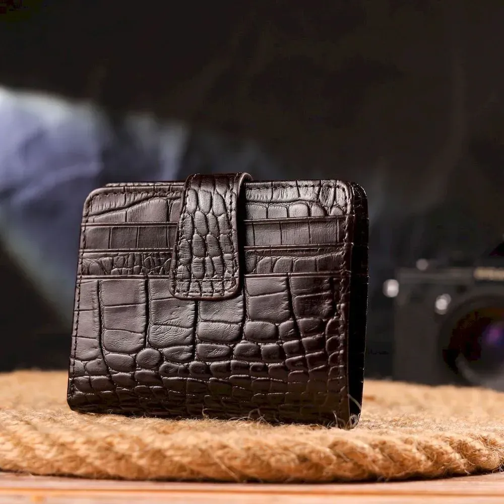 Стильный мужской кошелек-картхолдер, из натуральной фактурной кожи, с тиснением под крокодила. Аксессуар имеет отделение для купюр, скрытый карман и пятнадцать отсеков для карточек, два из них под сеточкой. Закрывается аксессуар в два сложения хлястиком на кнопку. Качественный кожаный аксессуар всегда считался показателем вкуса и достатка, именно такие изделия представлени в нашем магазине, у нас каждый найдет что-то для себя.