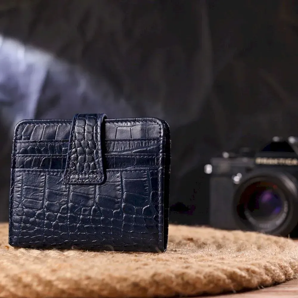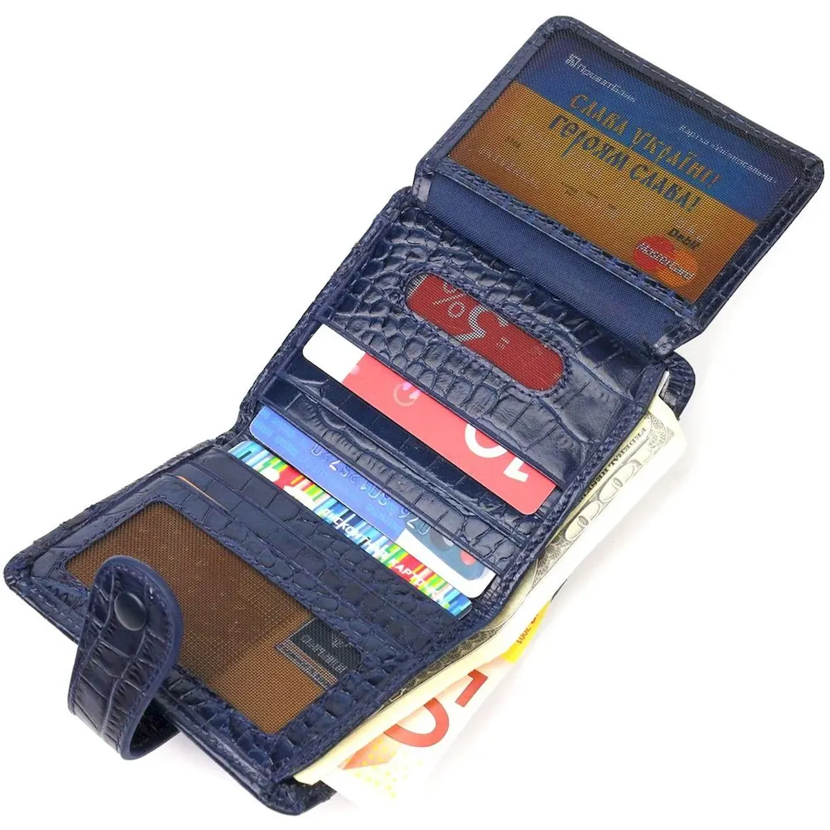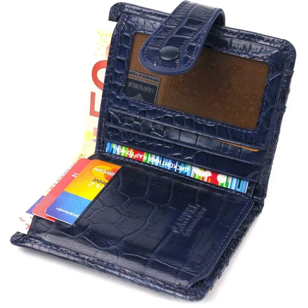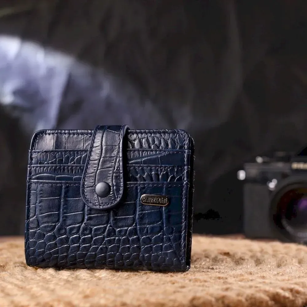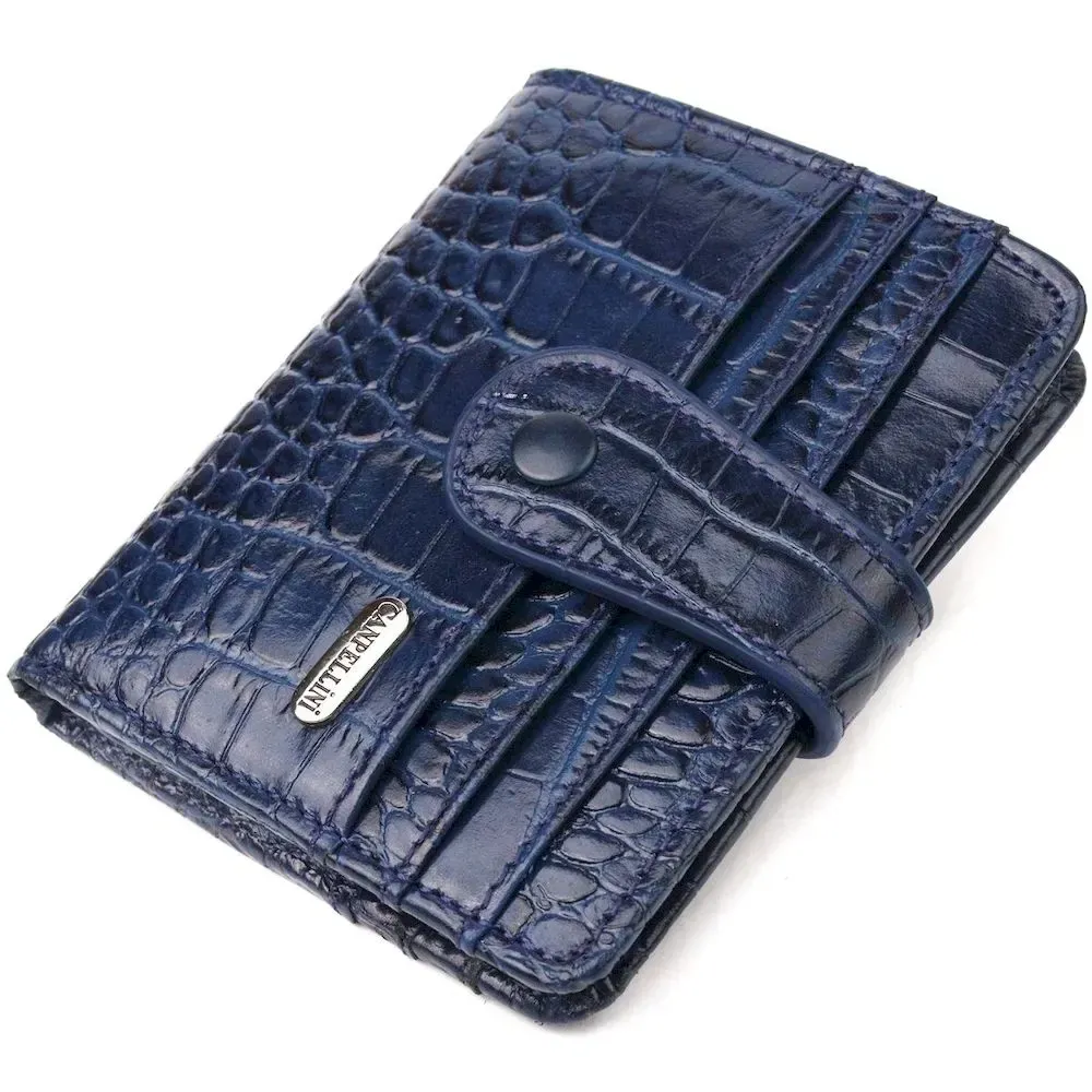 Интересный кошелек из натуральной кожи с тиснением под крокодила CANPELLINI 21687 Синий