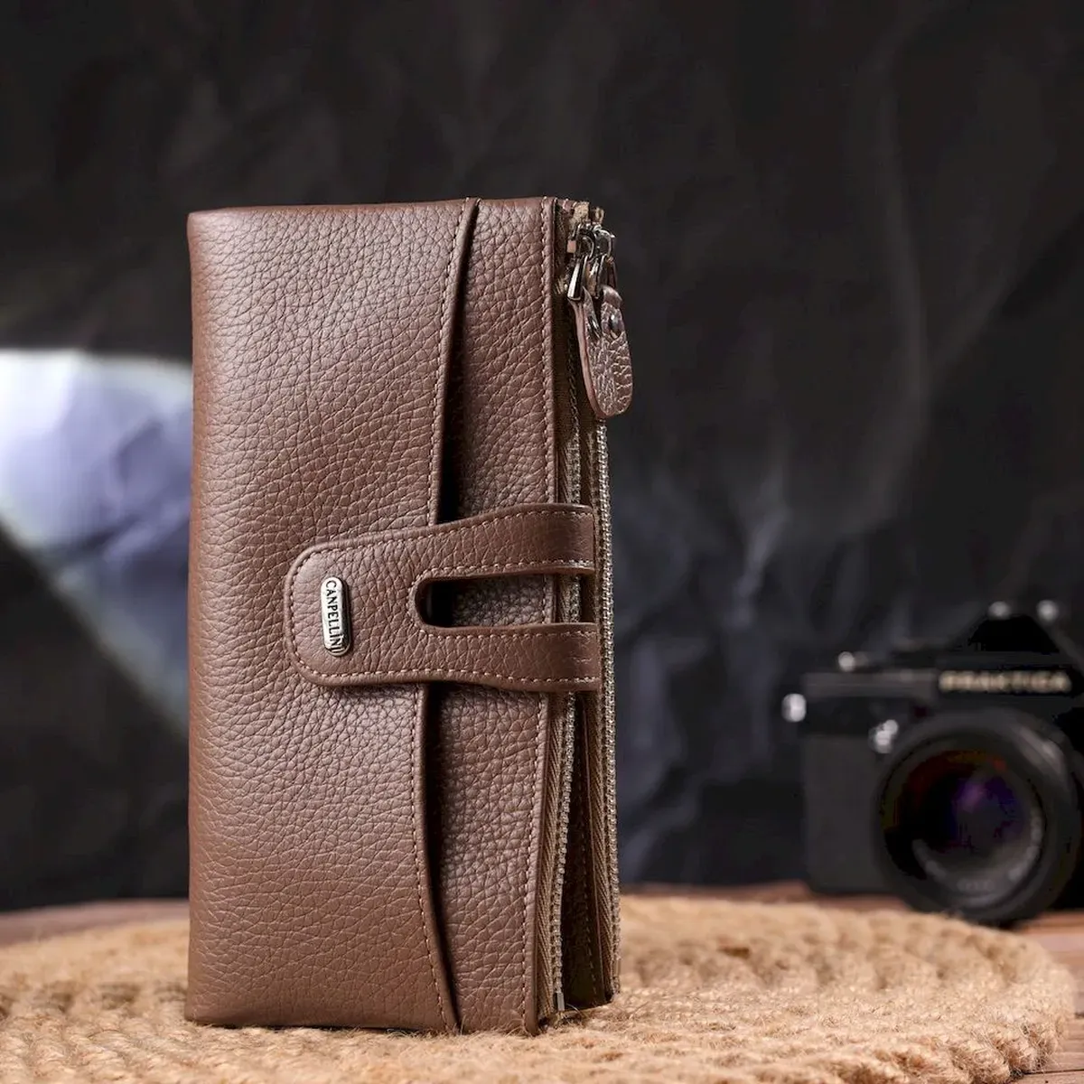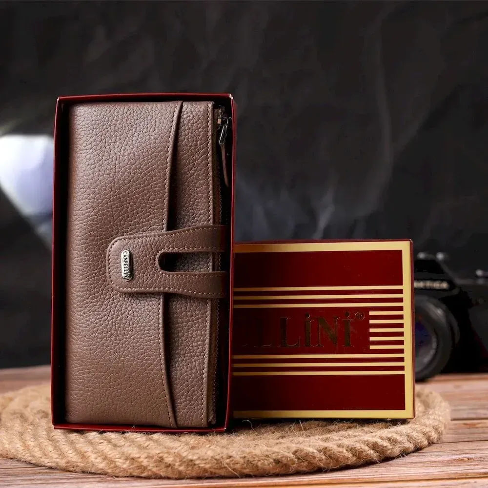 Интересный кошелек из натуральной зернистой кожи CANPELLINI 21634 Бежевый