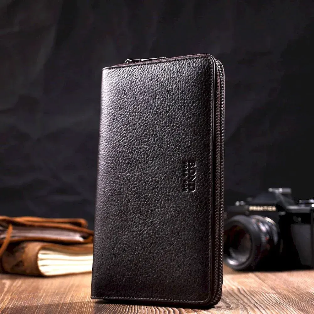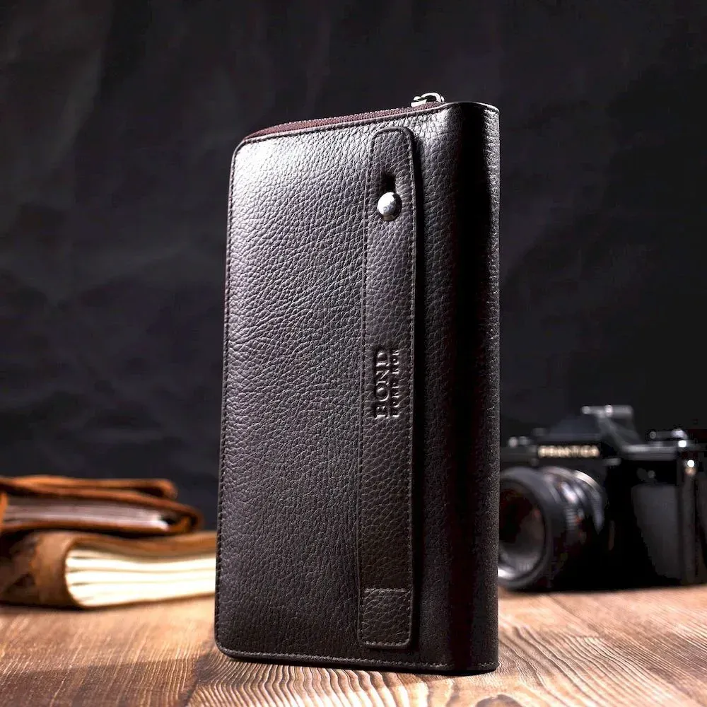 Интересный мужской клатч с одним отделением из натуральной кожи BOND 22032 Коричневый