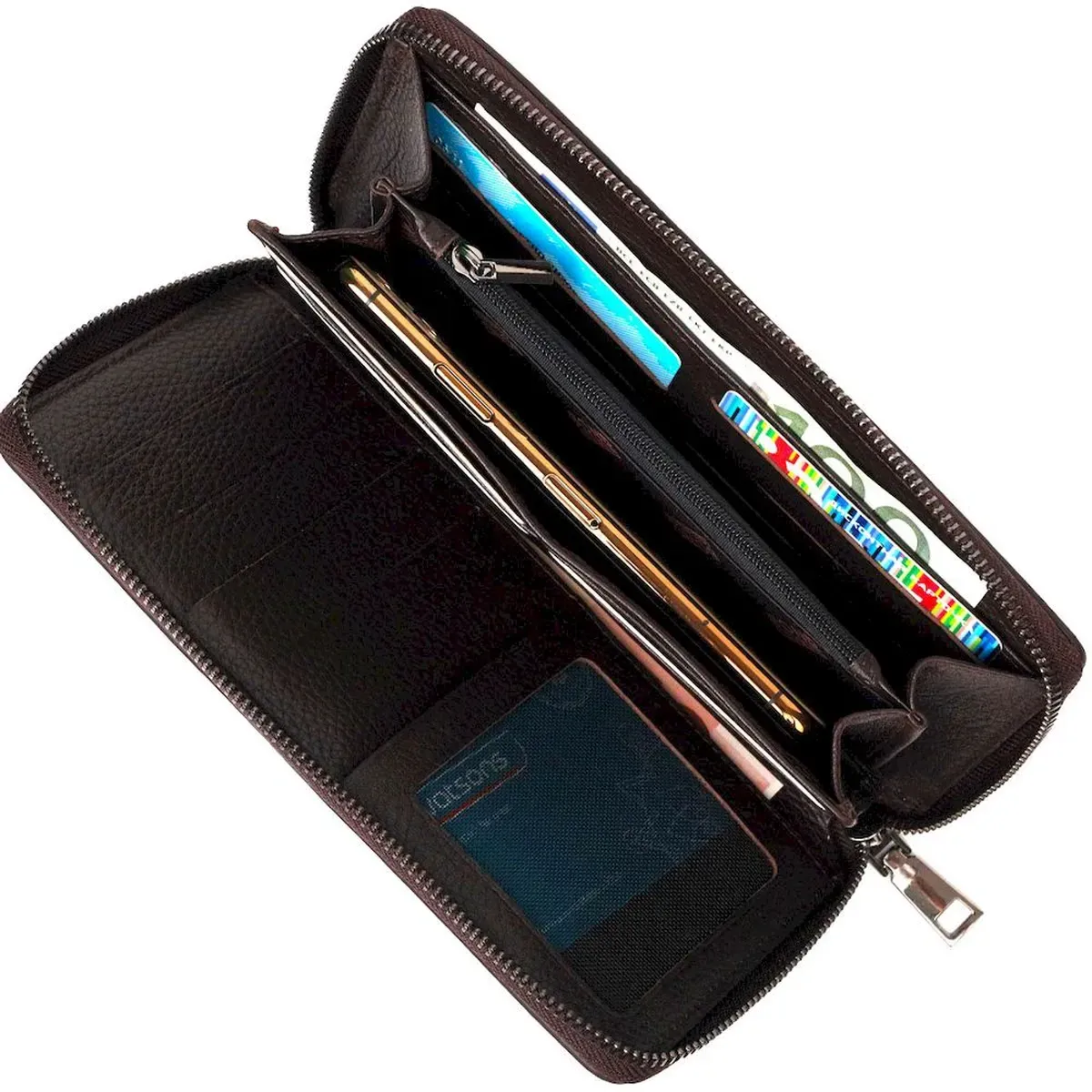 Превосходный мужской клатч из натуральной мягкой кожи, кошелек закрывается на молнию, внутри можно без проблем размещать бумажные банкноты, банковские карты и даже смартфон. Аксессуар состоит из двух отделений для купюр, двух прилегающих карманов, семнадцати слотов для кредиток и монетницы на молнии. Имеется также ручка для ладони на тыльной стороне клатча. Продается бумажник в красивой коробке от производителя. Качественный и надежный клатч - именно такой аксессуар должен быть у каждого уважающего себя человека.