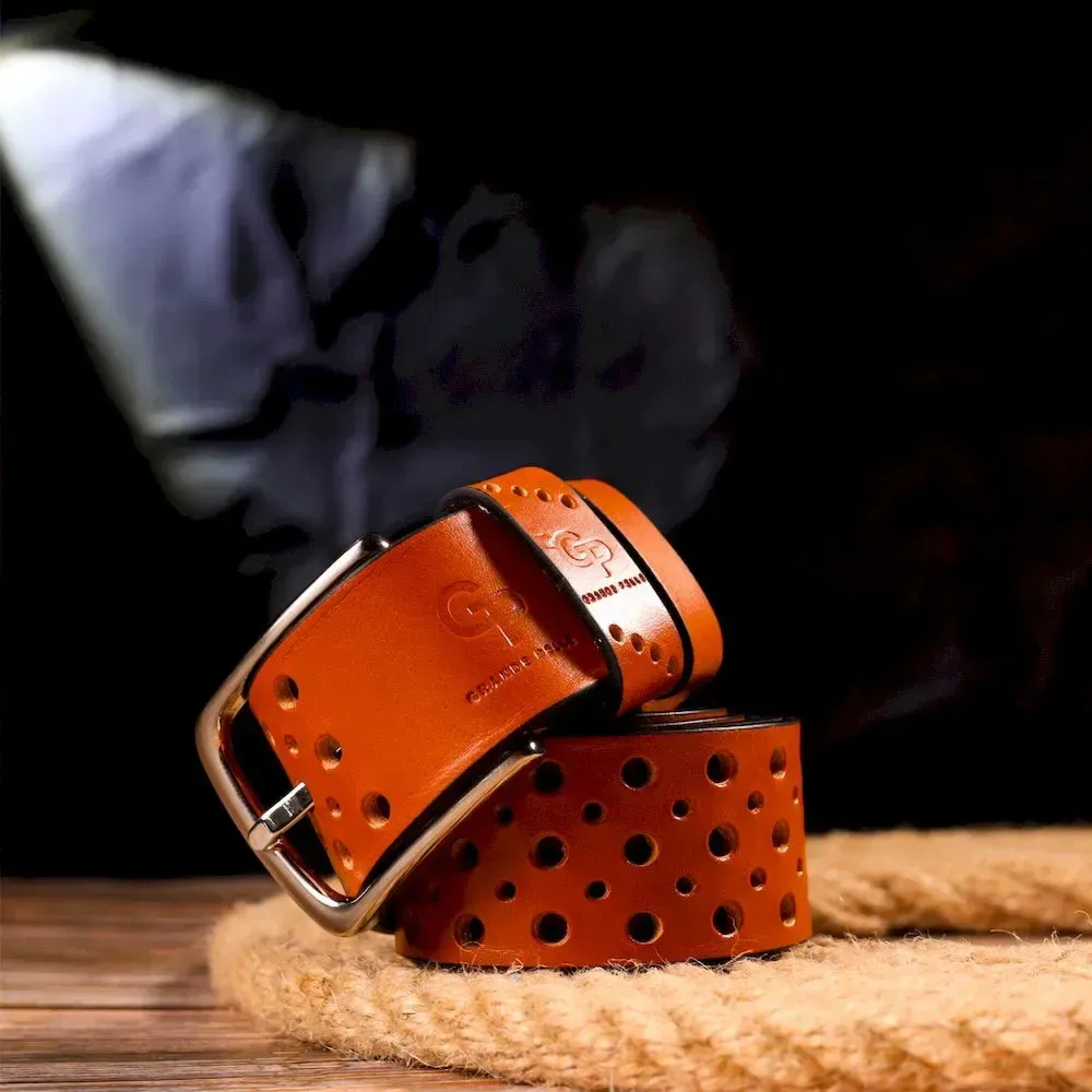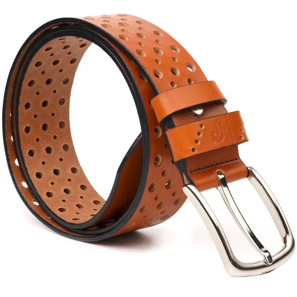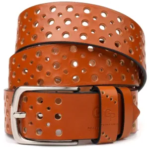 Интересный ремень унисекс с перфорацией из натуральной кожи Grande Pelle 21474 Рыжий