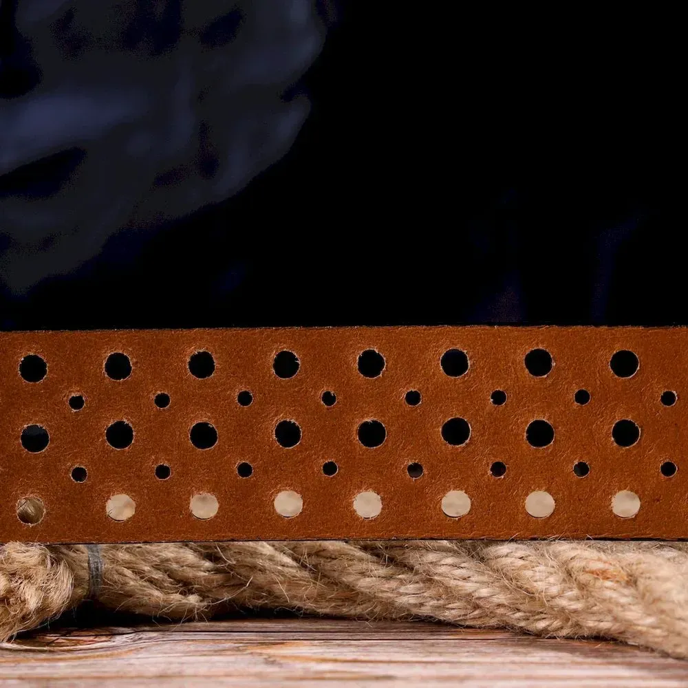 Превосходный ремень из натуральной кожи с перфорацией от украинского производителя. Аксессуар имеет необычную фактуру, аккуратно пошит, длина регулируется в меньшую сторону. Ремень подойдет как женщинам, так и мужчинам. Пряжка классическая в минималистическом дизайне. Качественный кожаный ремень станет хорошим подарком на любой праздник.