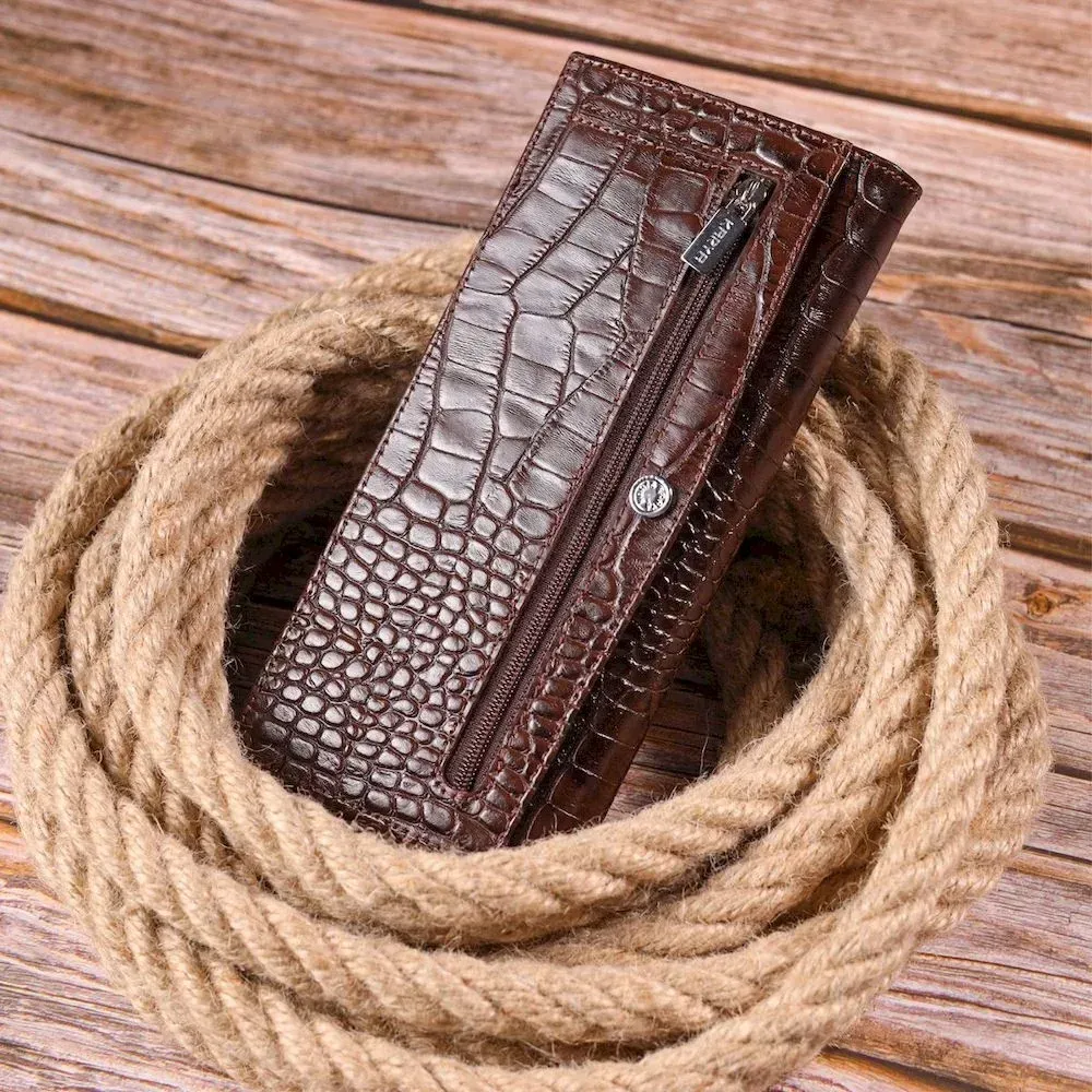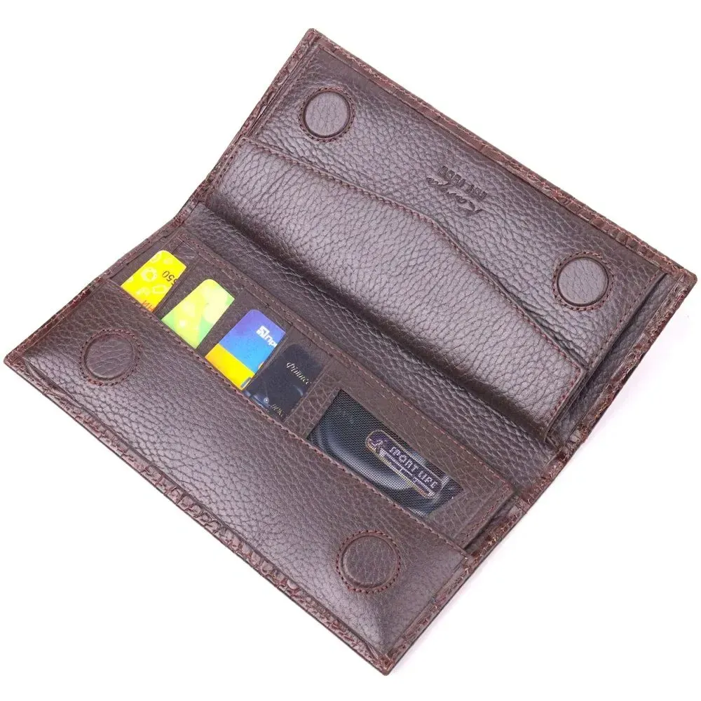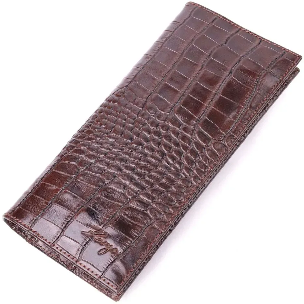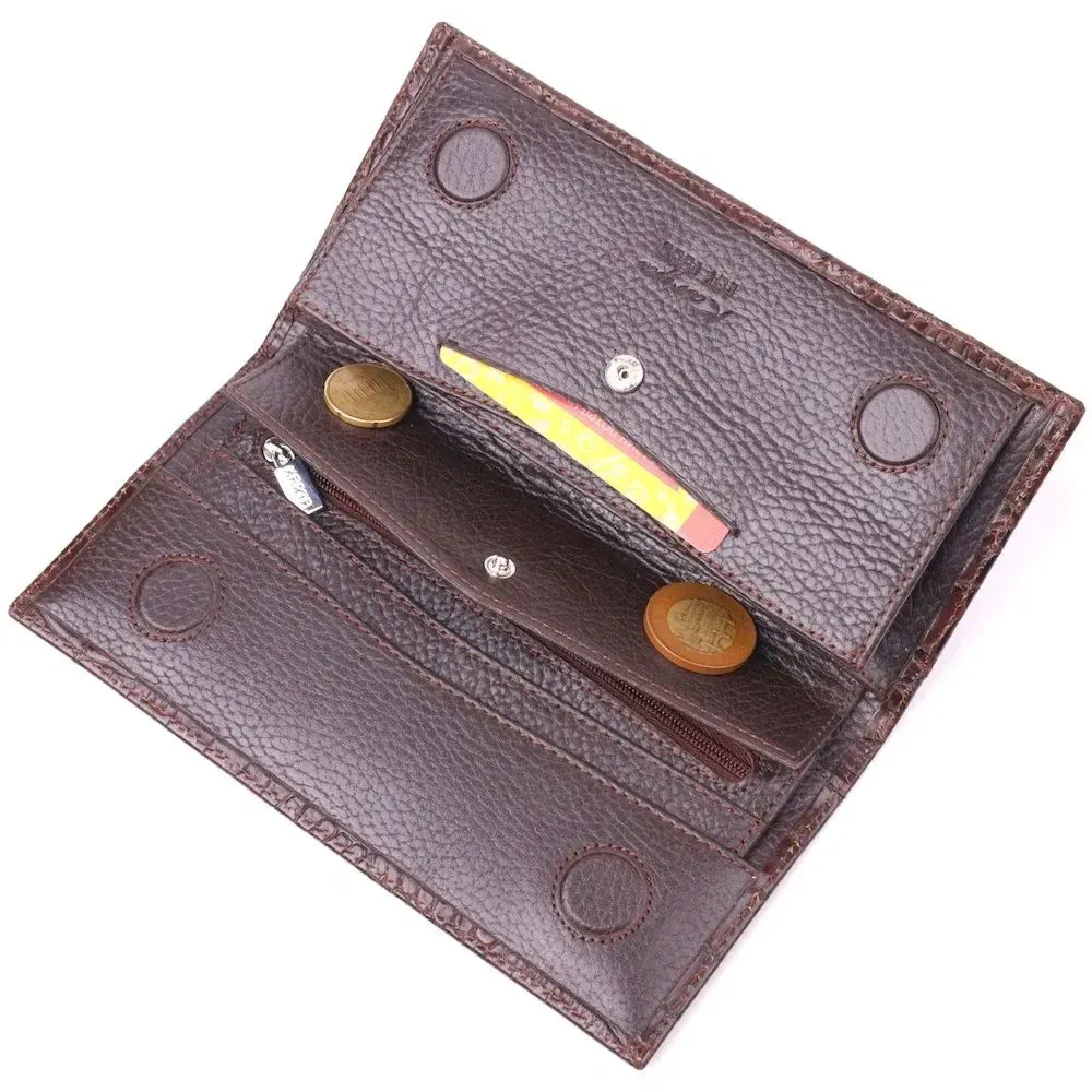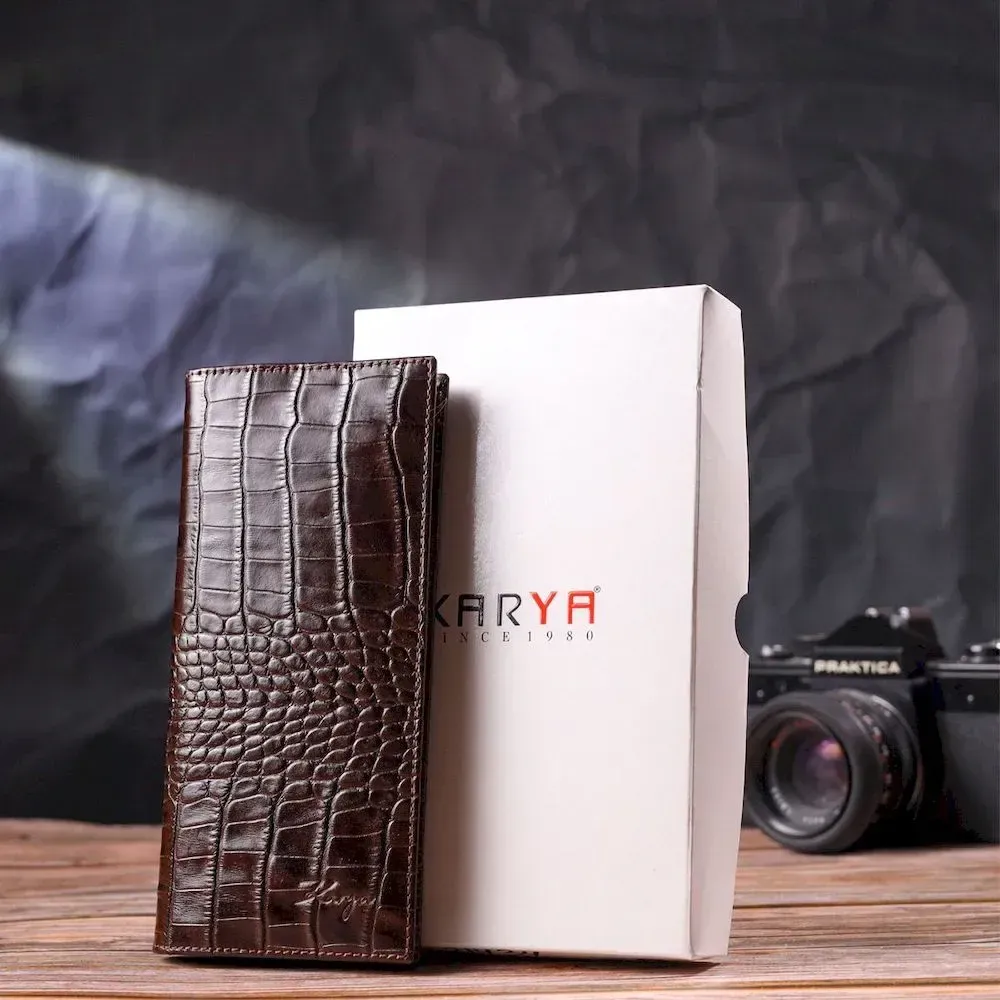 Интересный вертикальный бумажник из натуральной фактурной кожи KARYA 21434 Коричневый