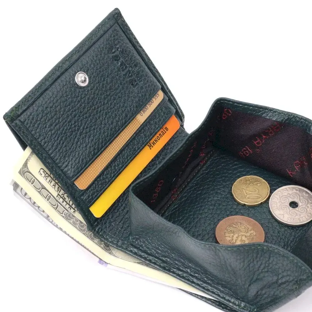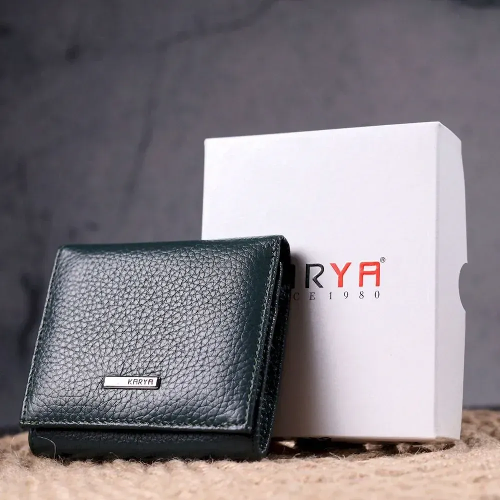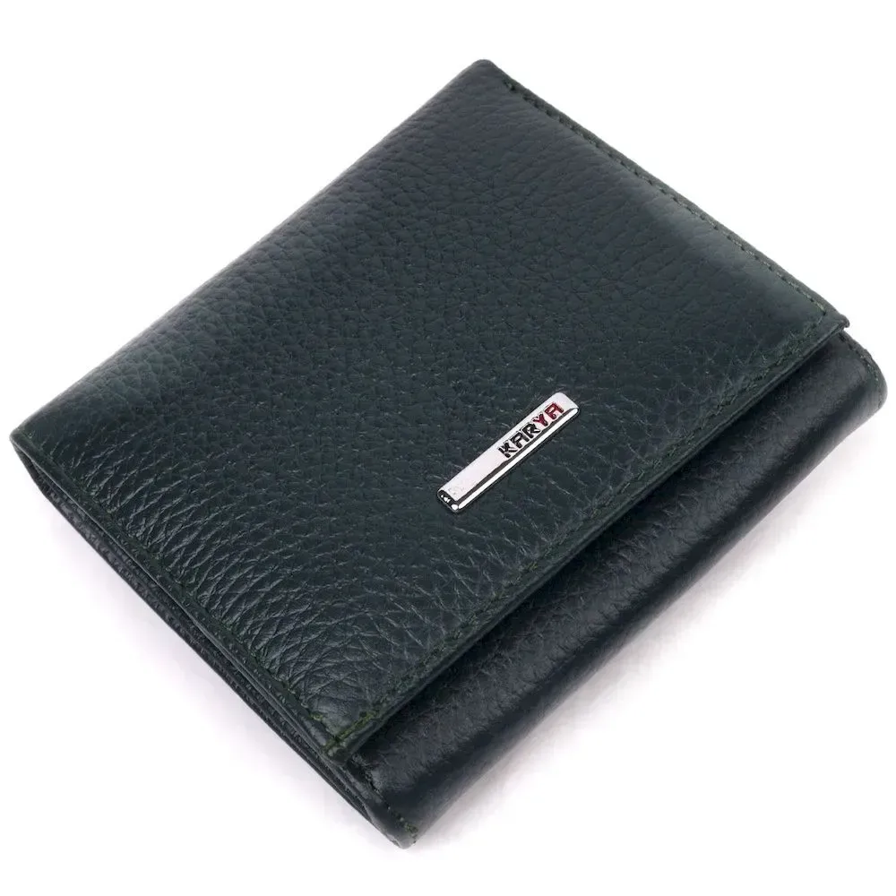 Интересный женский кошелек с монетницей из натуральной кожи KARYA 21379 Зеленый