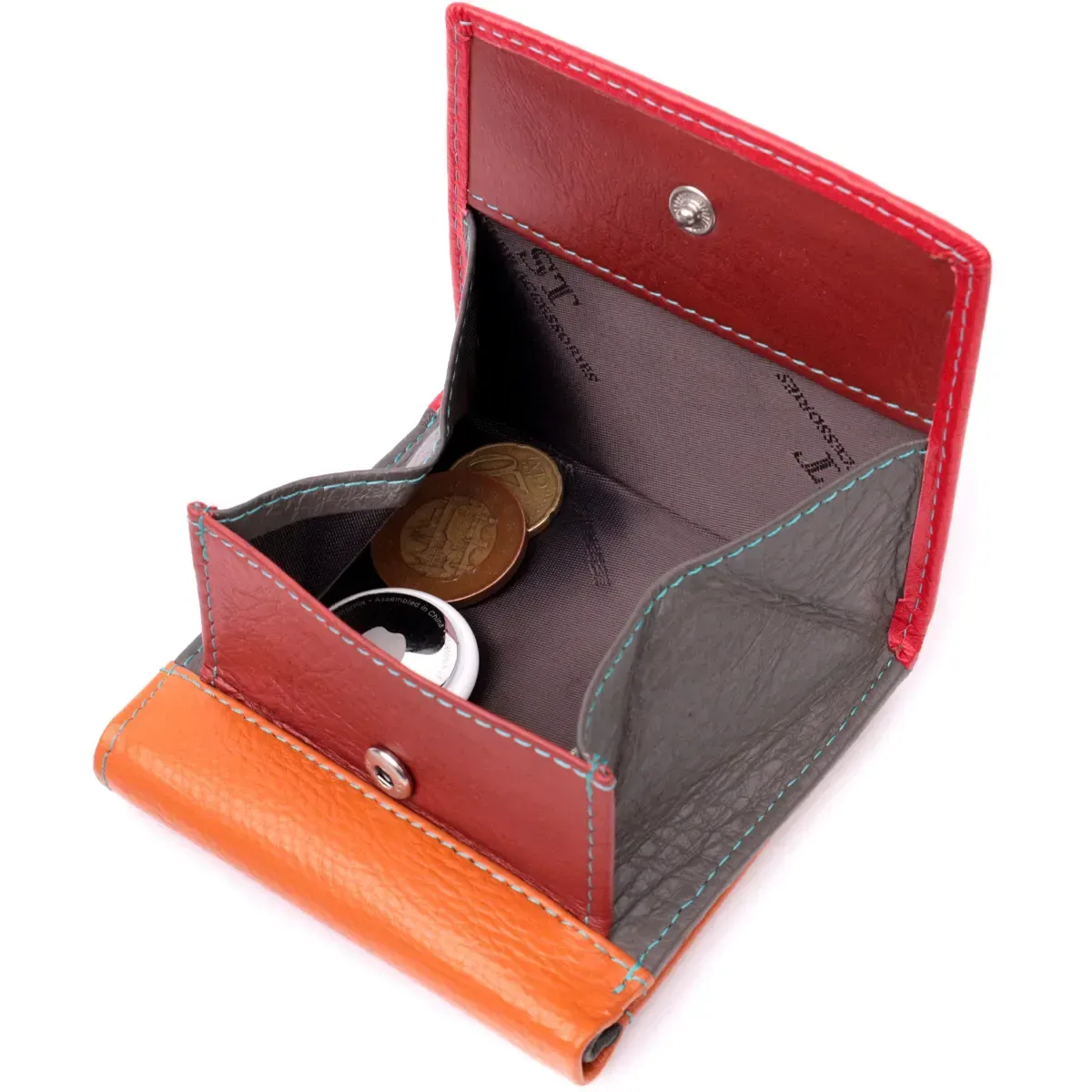 - 1 карман для монет на кнопке под клапаном, снаружи;